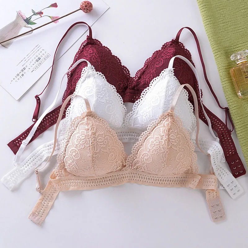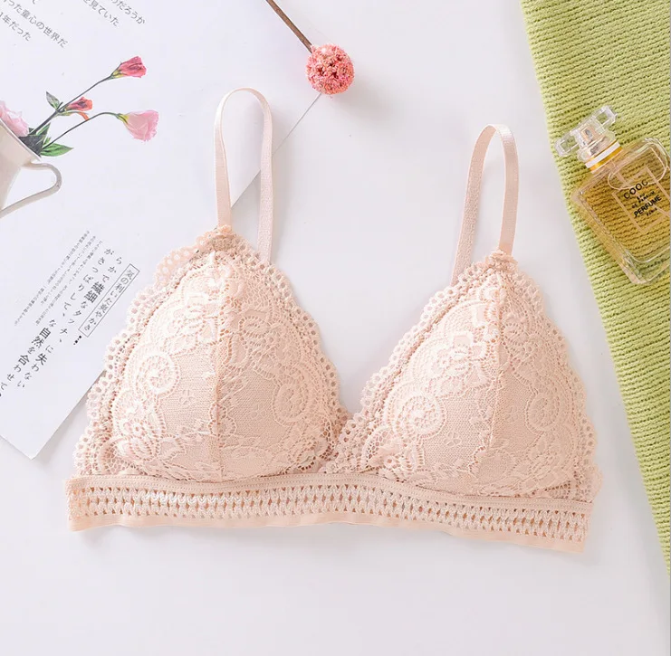 1pcs Womens Sport Bra Girls Lace Triangle Cup Underwear Female Breathable Sexy No Steel Ring Bras French Style Fashion Brassiere