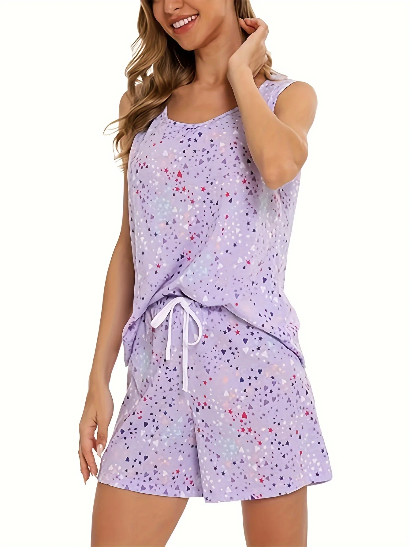 2-Piece Summer Sleepwear Set for Women, Loose and Comfortable, in Multiple Colors, Featuring a Tank Top and Shorts