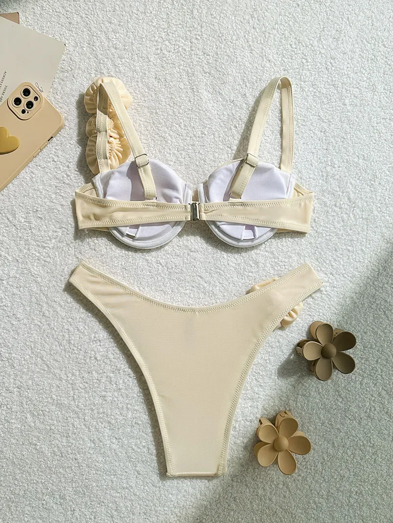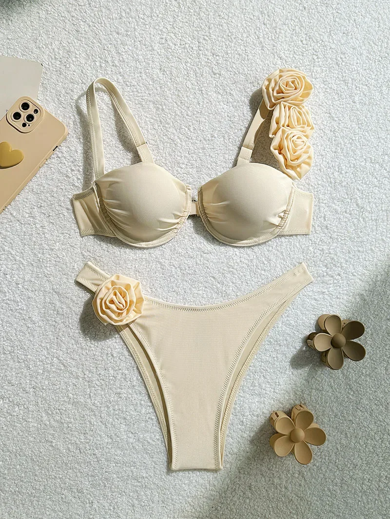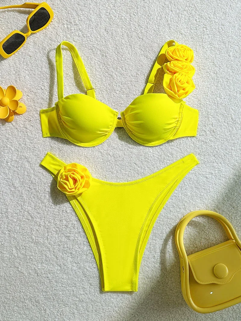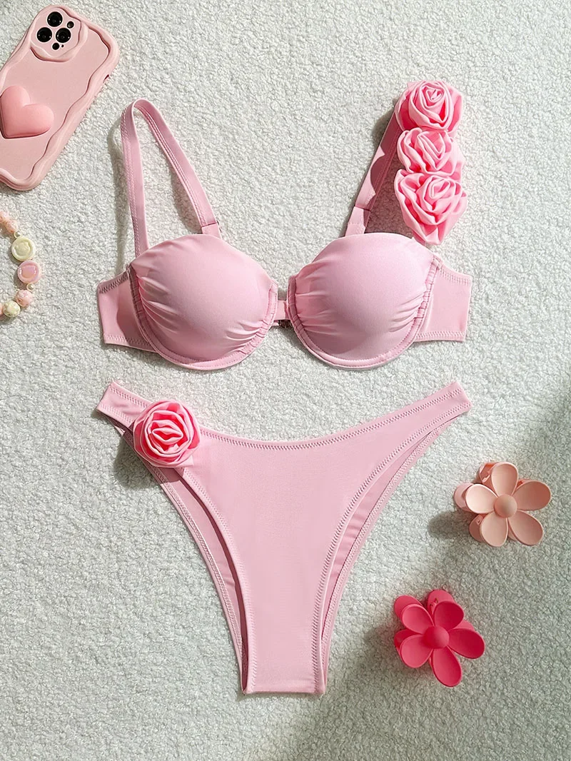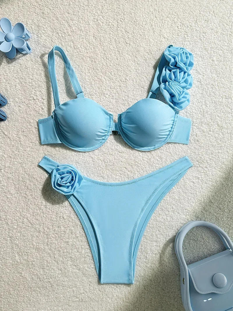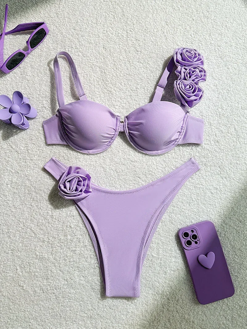 2025 New Sexy Bikini Set Women Swimsuit 3d Flower Strap Swimwear Push Up Thong Bathing Suit Underwire Biquini 2 Piece Beachwear