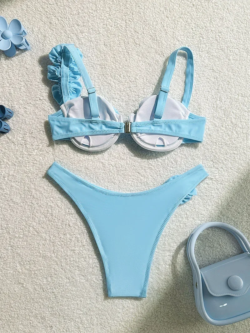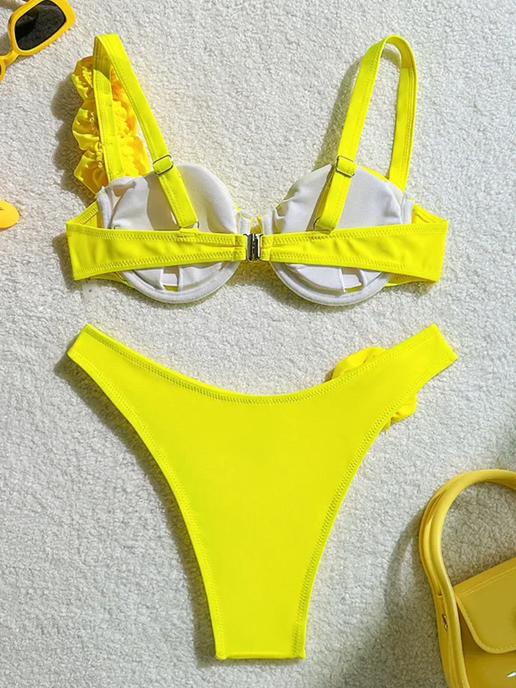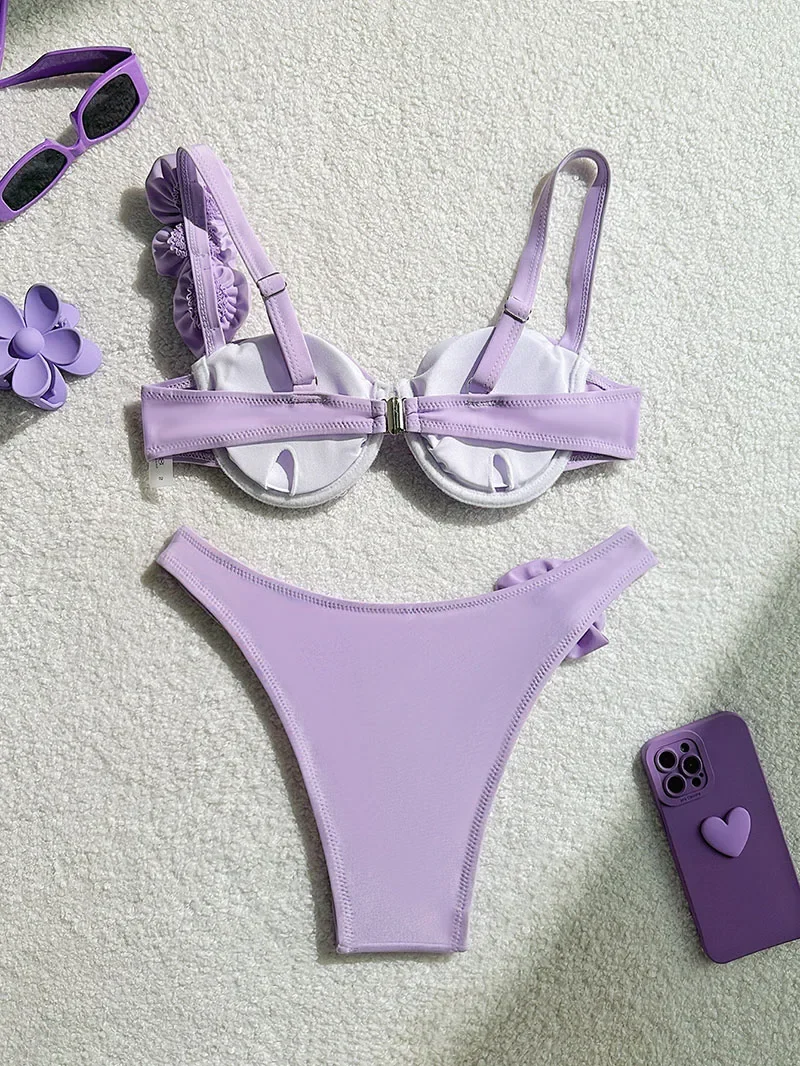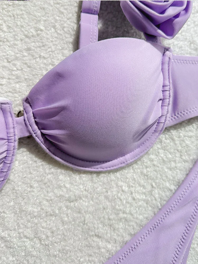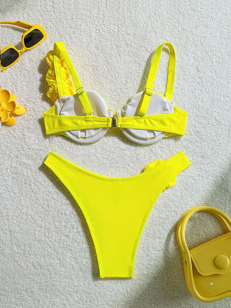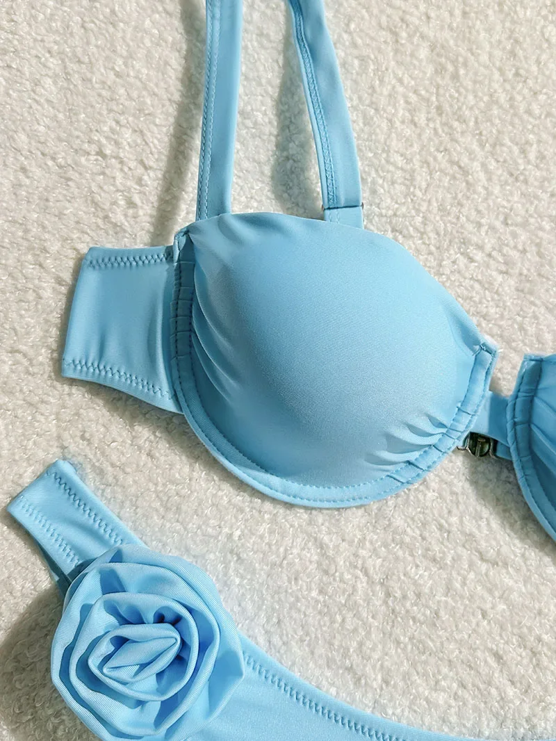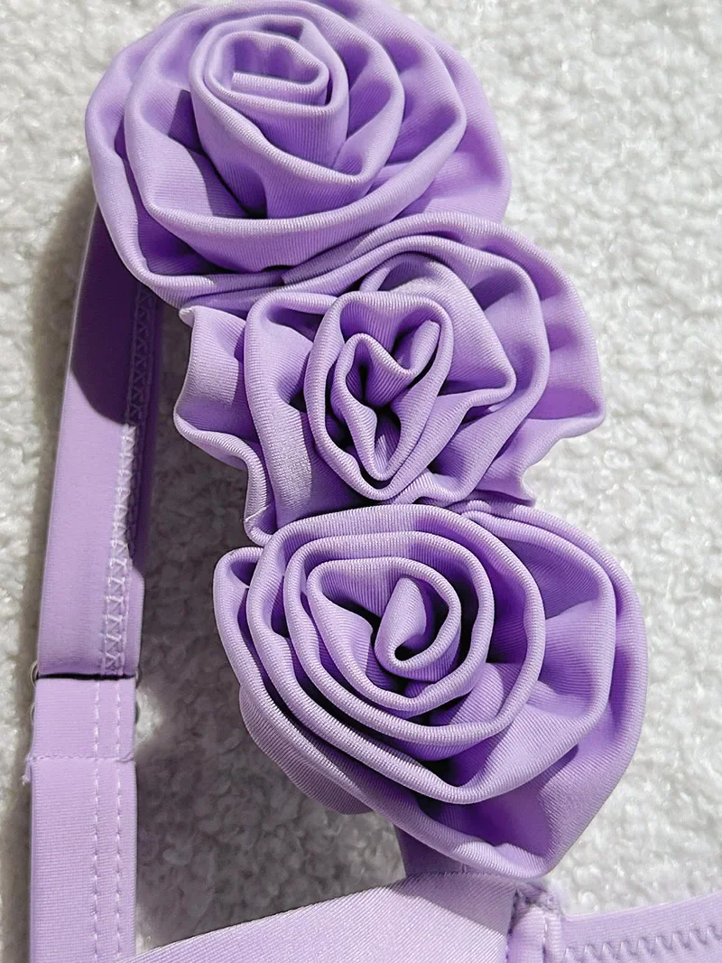 2025 New Sexy Bikini Set Women Swimsuit 3d Flower Strap Swimwear Push Up Thong Bathing Suit Underwire Biquini 2 Piece Beachwear