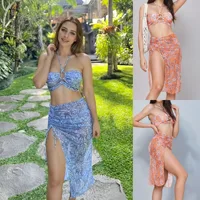 2025 new women’s printed bikini suit high waist lace-up swimsuit