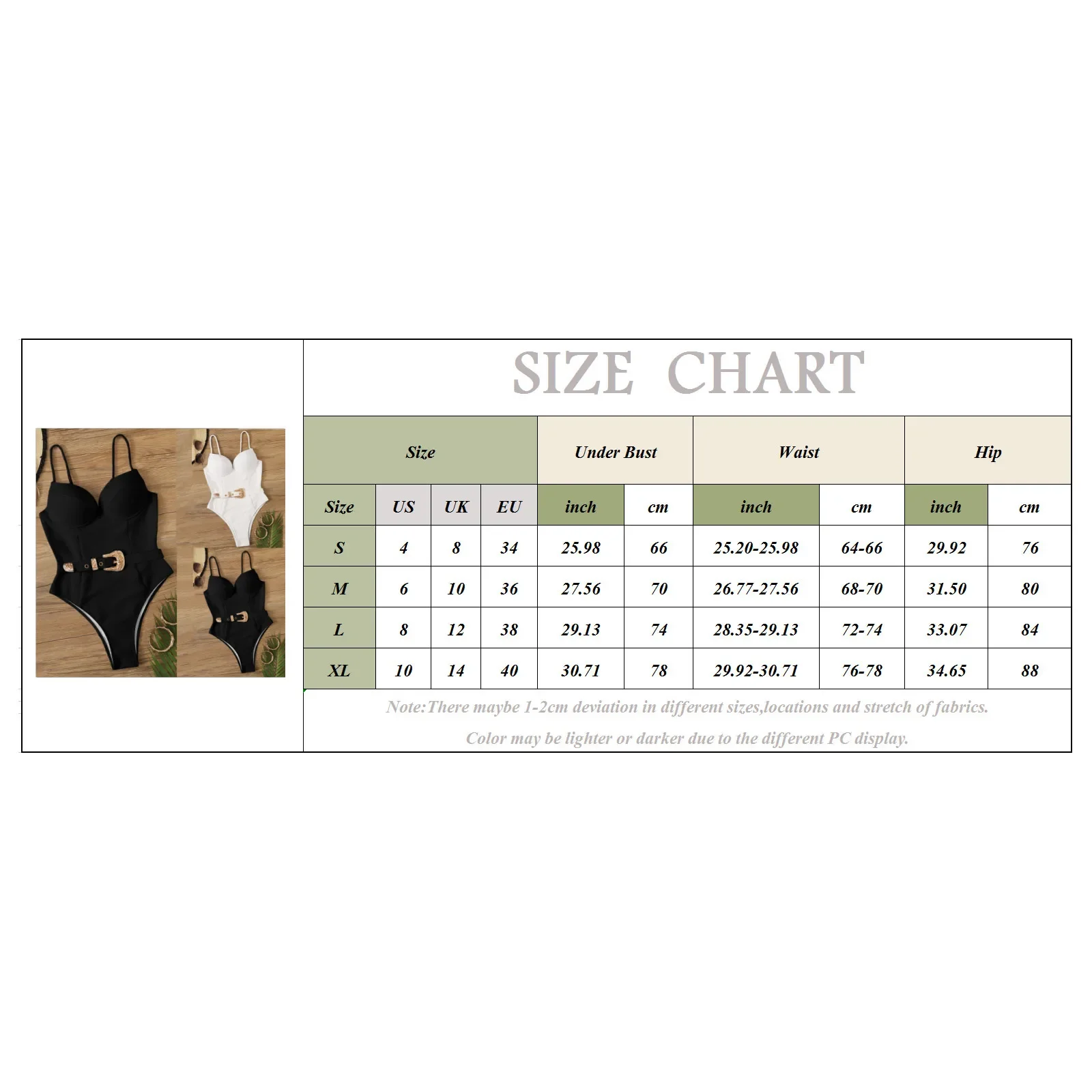 | Size:L | US:8 | UK:12 | EU:38 | Under Bust:74cm/29.13” | Waist:72-74cm/28.35-29.13” | Hip:84cm/33.07” |