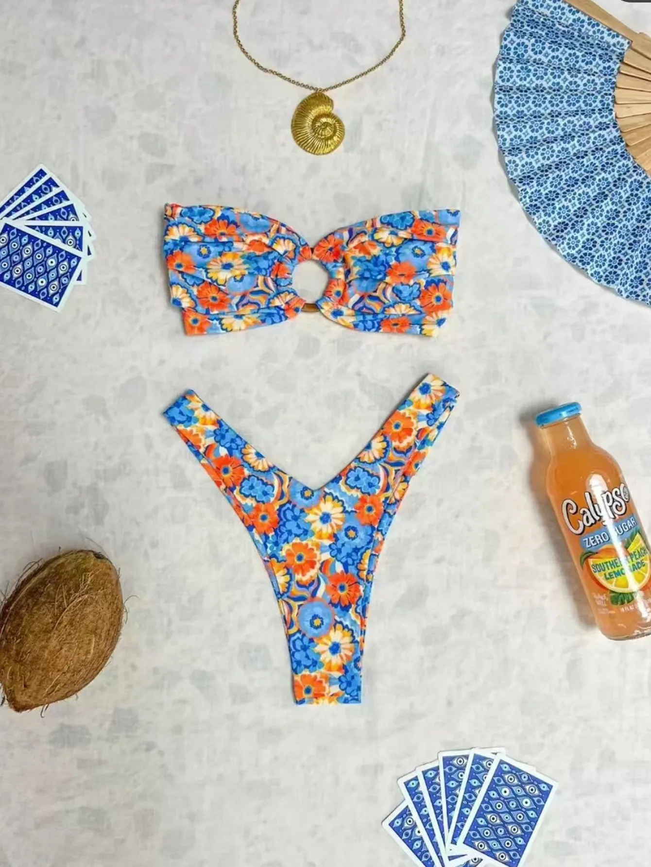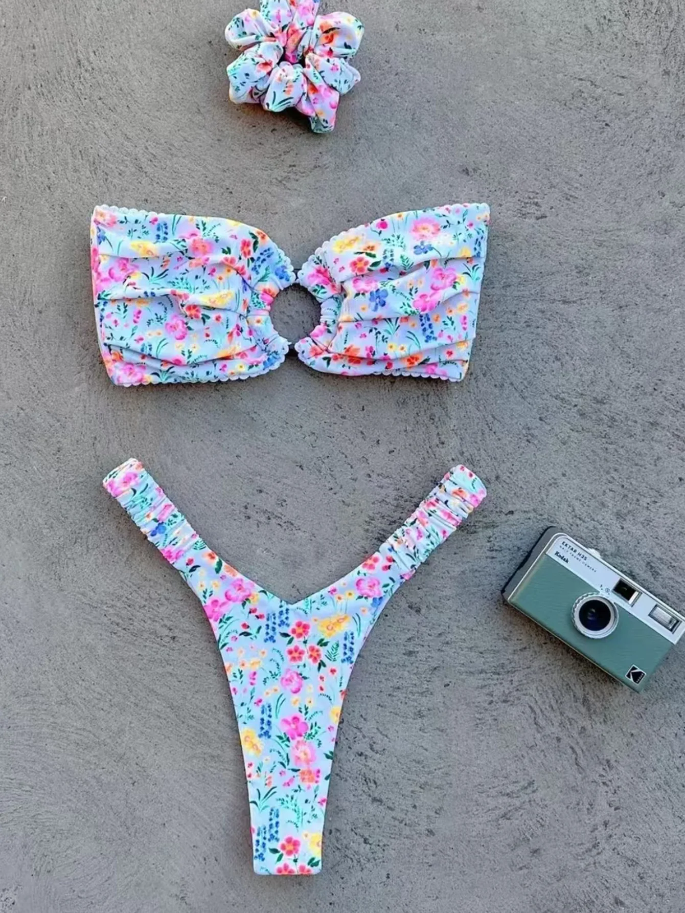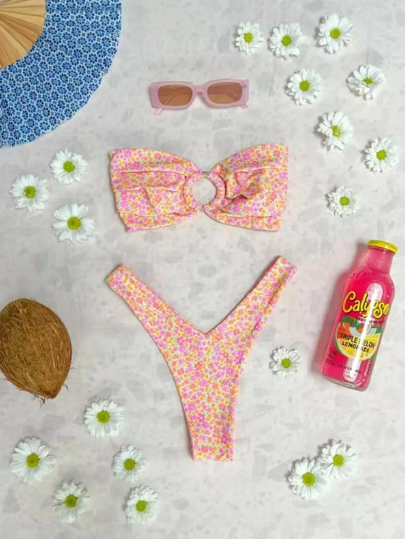 2025 summer new style women’s fresh printed ring split swimsuit beach swimsuit