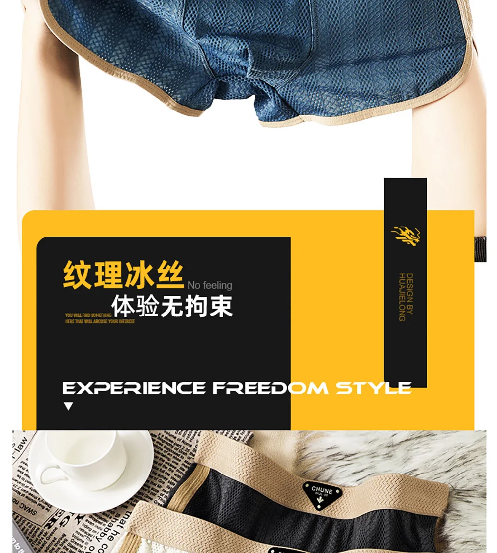 3PCS/Pack Fashion Solid Hollow Out Ice Silk Men's Panties Cool Breathable Mesh Crotch Underwear Man High Elastic Waistband Boxers