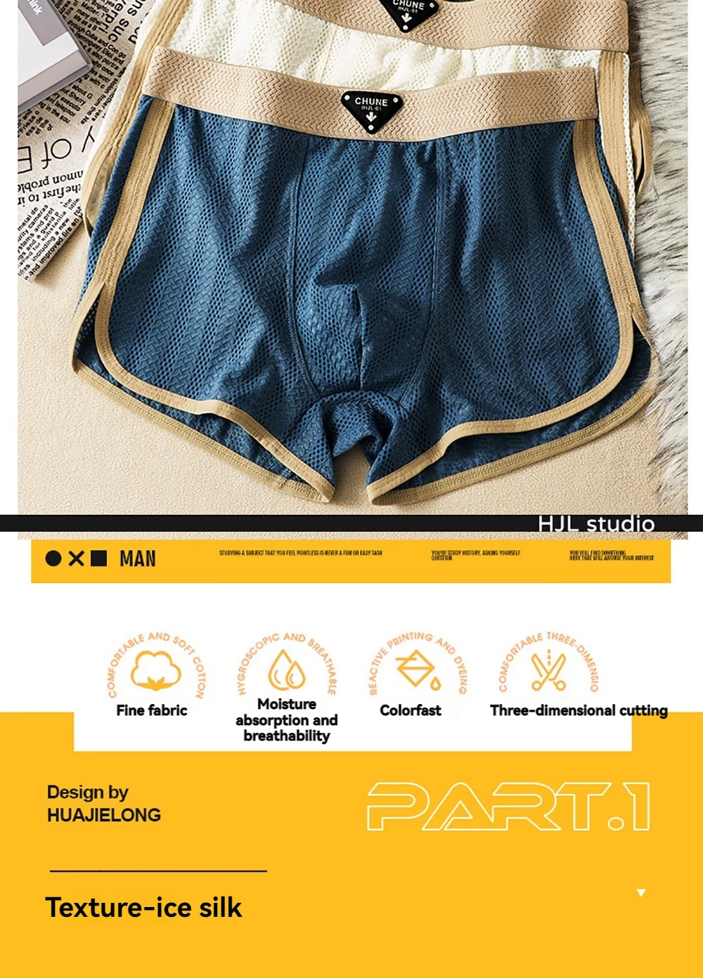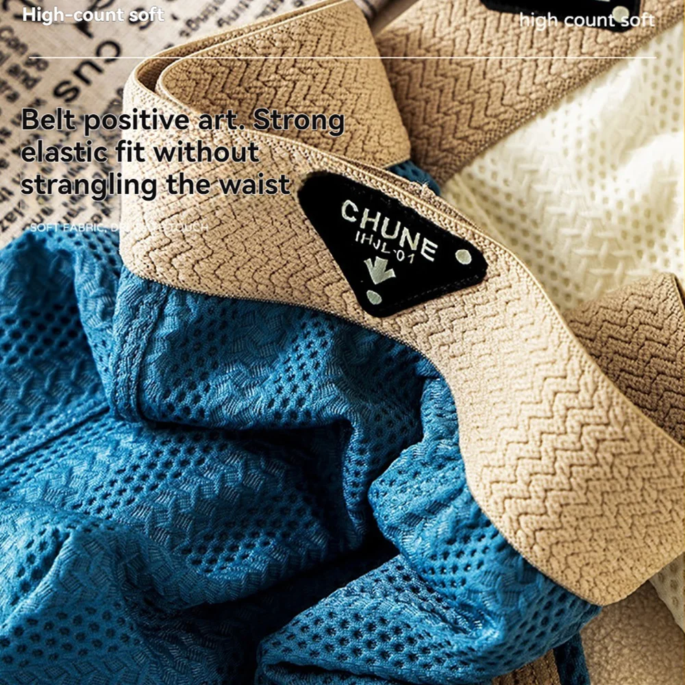 3PCS/Pack Fashion Solid Hollow Out Ice Silk Men’s Panties Cool Breathable Mesh Crotch Underwear Man High Elastic Waistband Boxer
