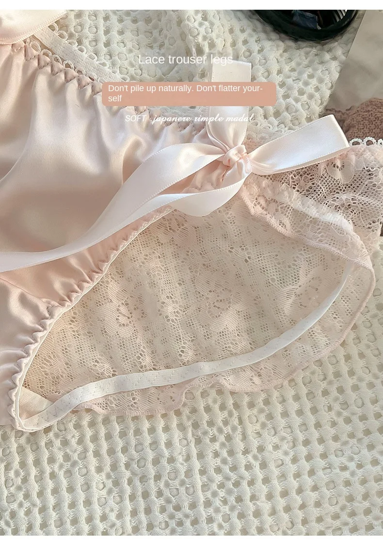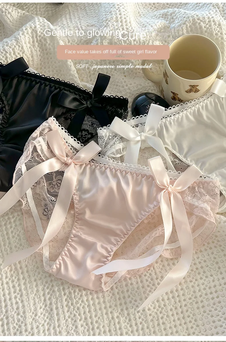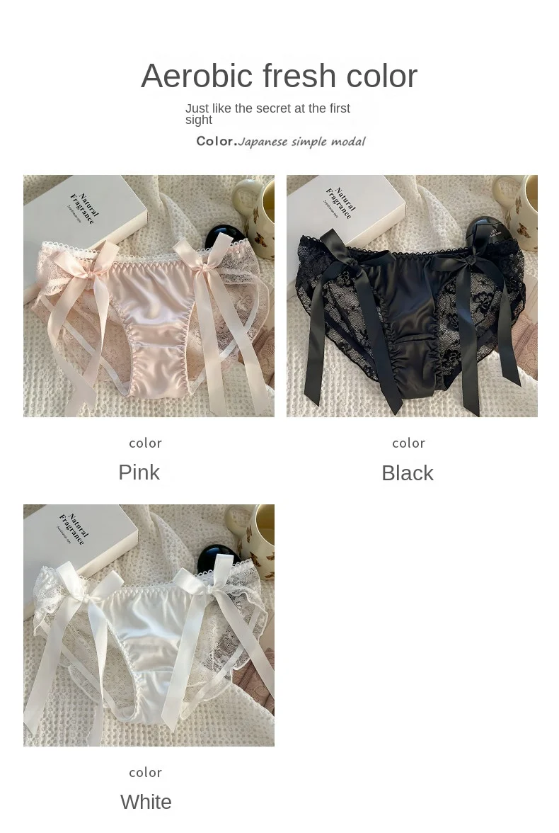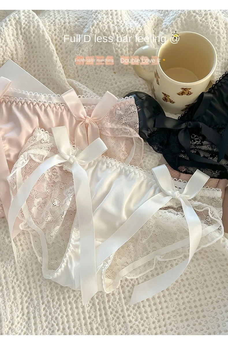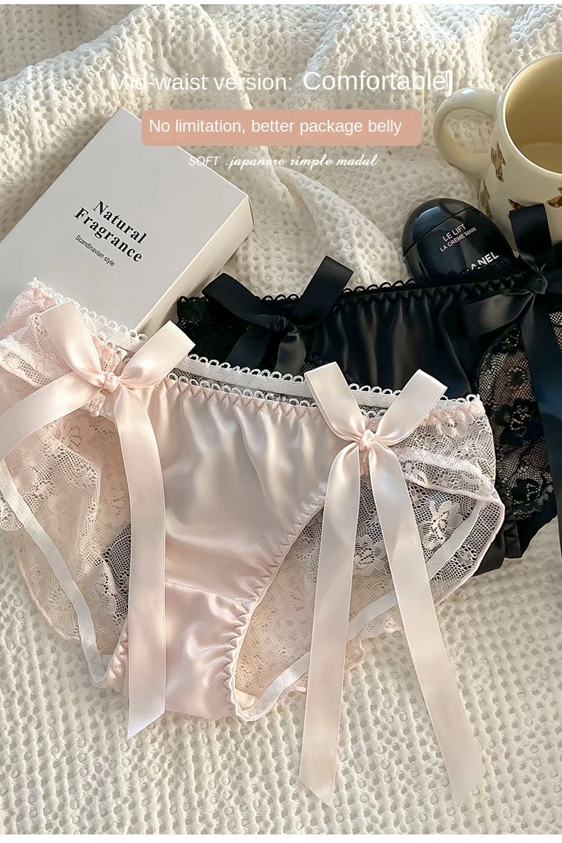 3PCS/set Ladies Sexy Mesh Panties Mid-waist Seamless Lace Underwear Briefs Japanese Style Young Girl Underwear Pink Bow Lingerie