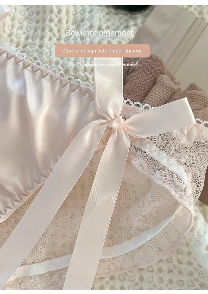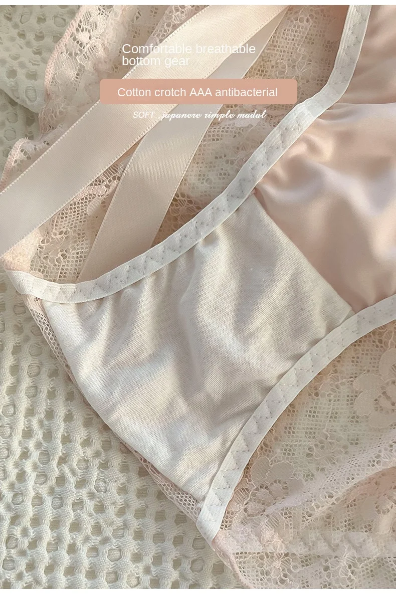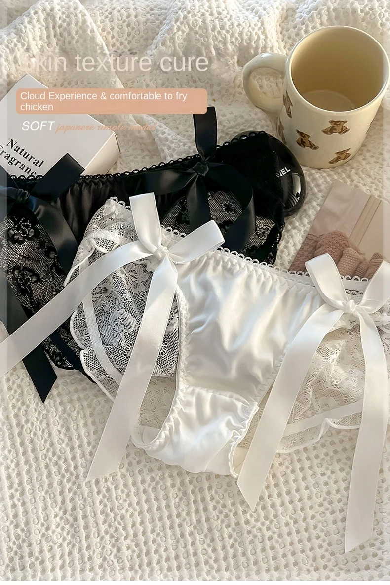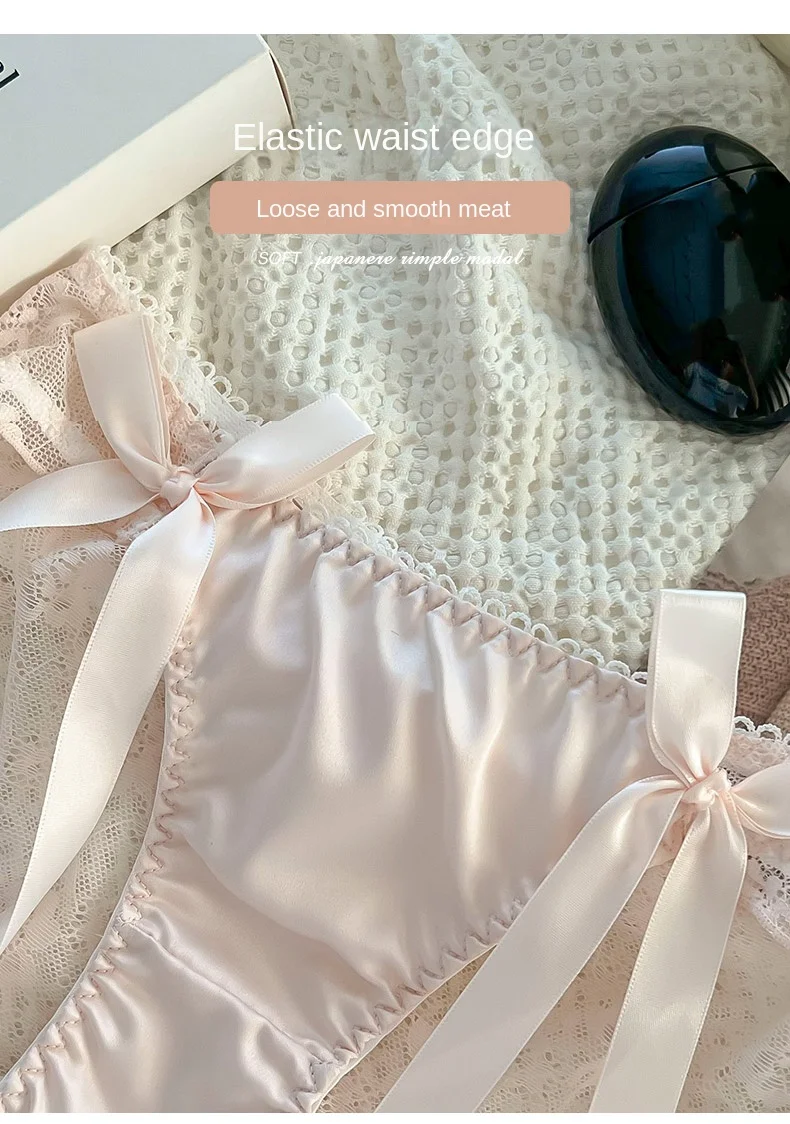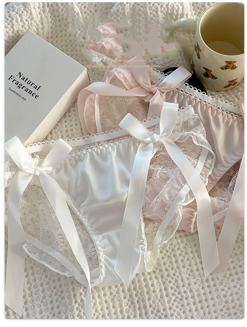 3PCS/set Ladies Sexy Mesh Panties Mid-waist Seamless Lace Underwear Briefs Japanese Style Young Girl Underwear Pink Bow Lingerie