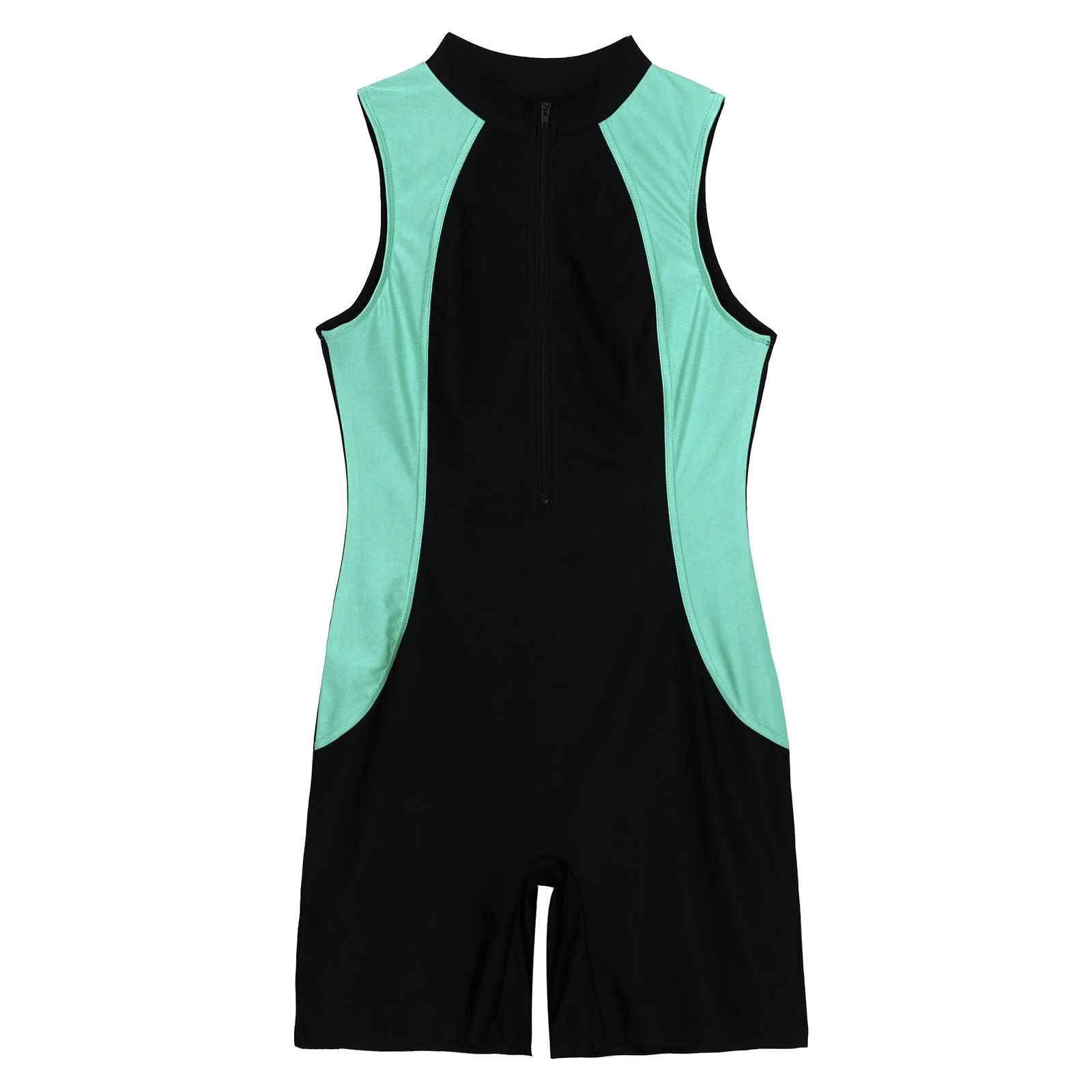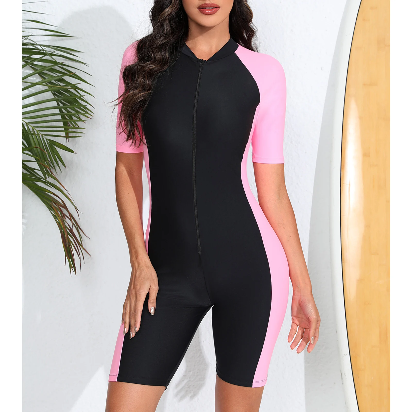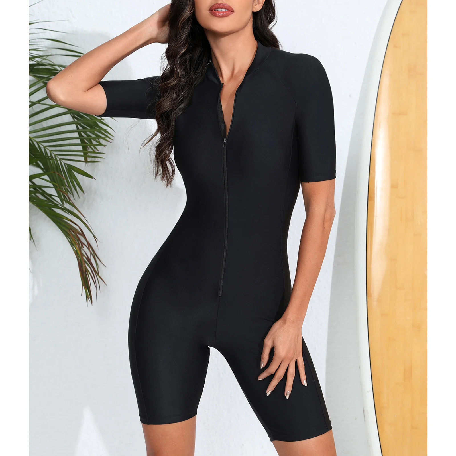 Athletic One Piece Swimsuits for Women Boy Leg Swimwear Front Zip Surfing Wetsuit Jumpsuit Beachwear Rushguard Bathing Suit