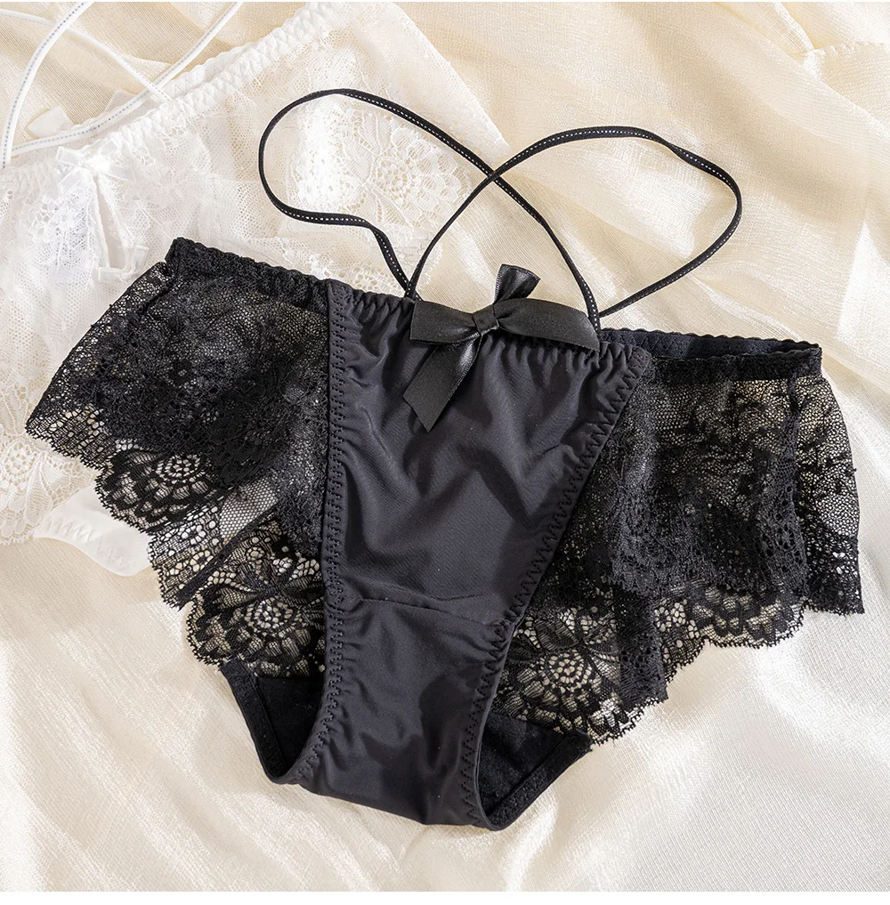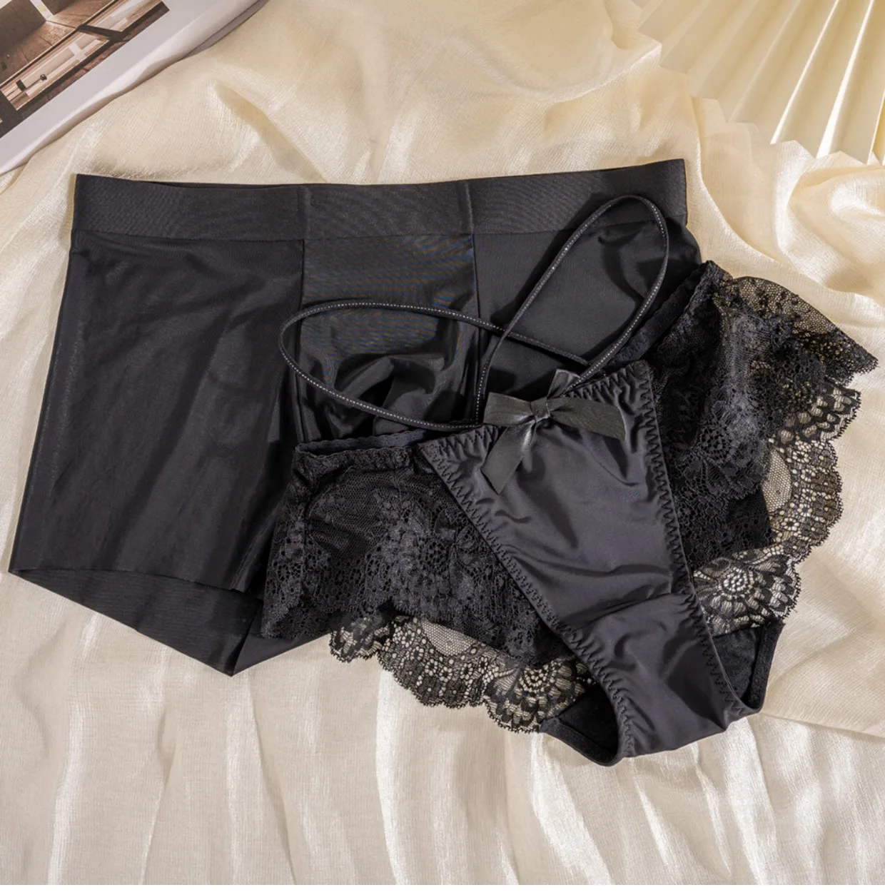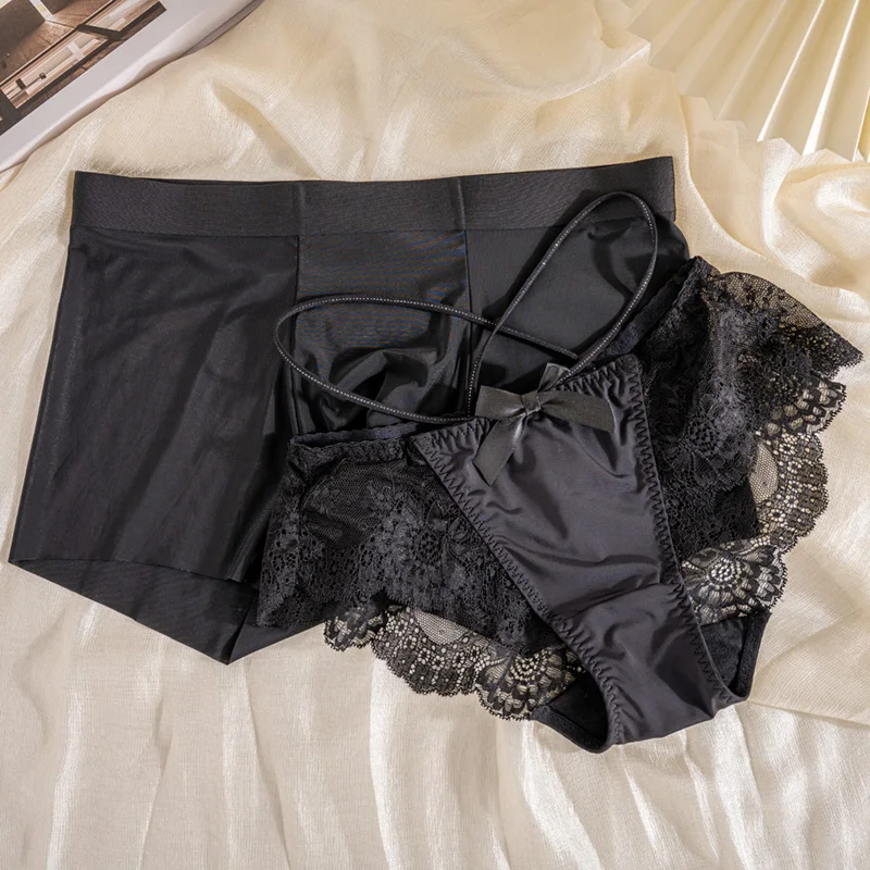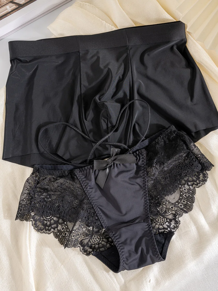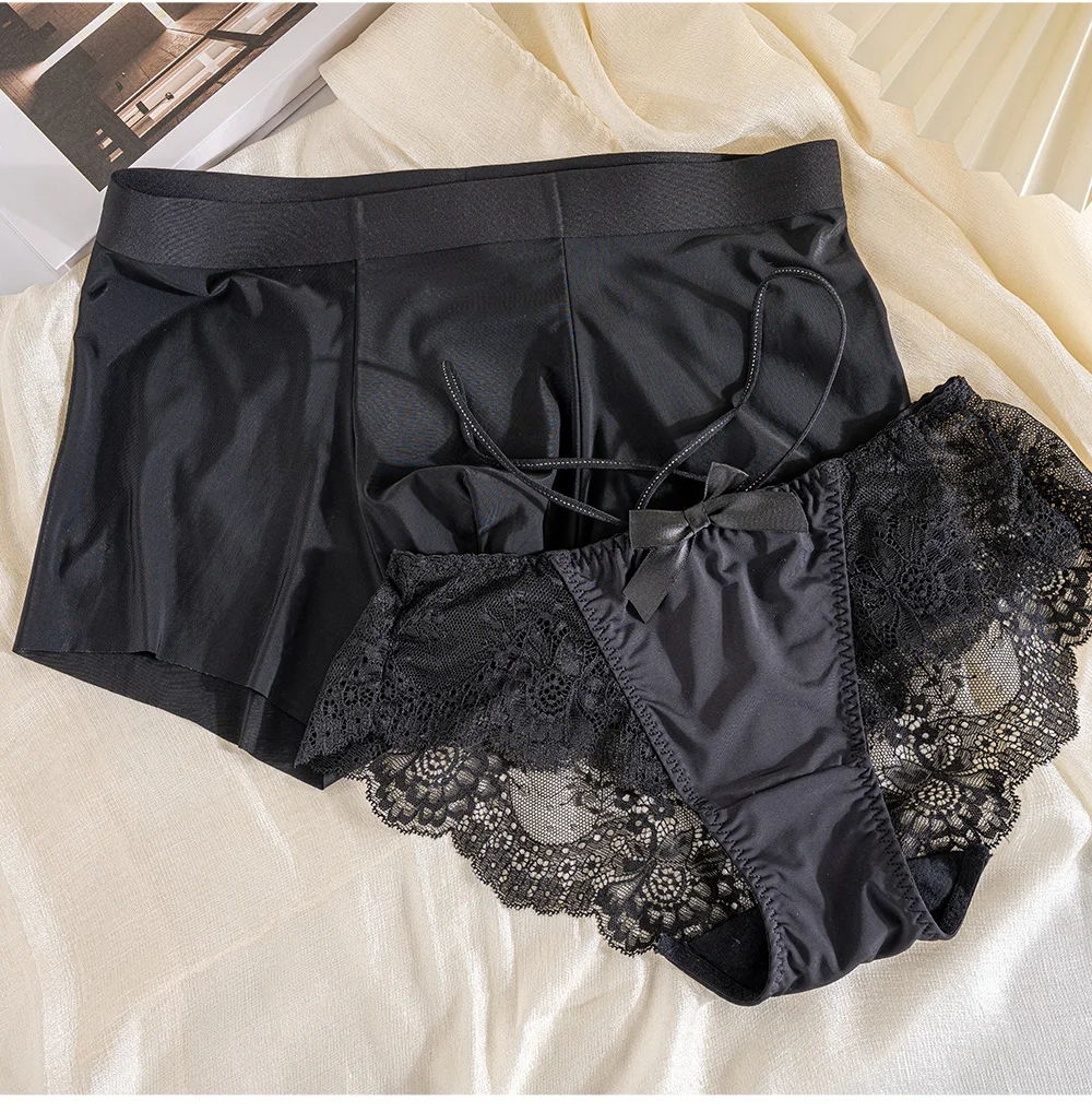 Black Sexy Couple Underwear For Men And Women Sexy Pure Desire Ice Silk Traceless Lace Transparent Comfortable Panties
