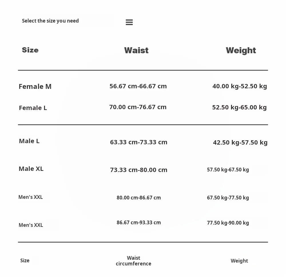 | size | women L men L, women L men XL, women L men XXL, women L men XXXL, women M men L, women M men XL, women M men XXL, women M men XXXL |