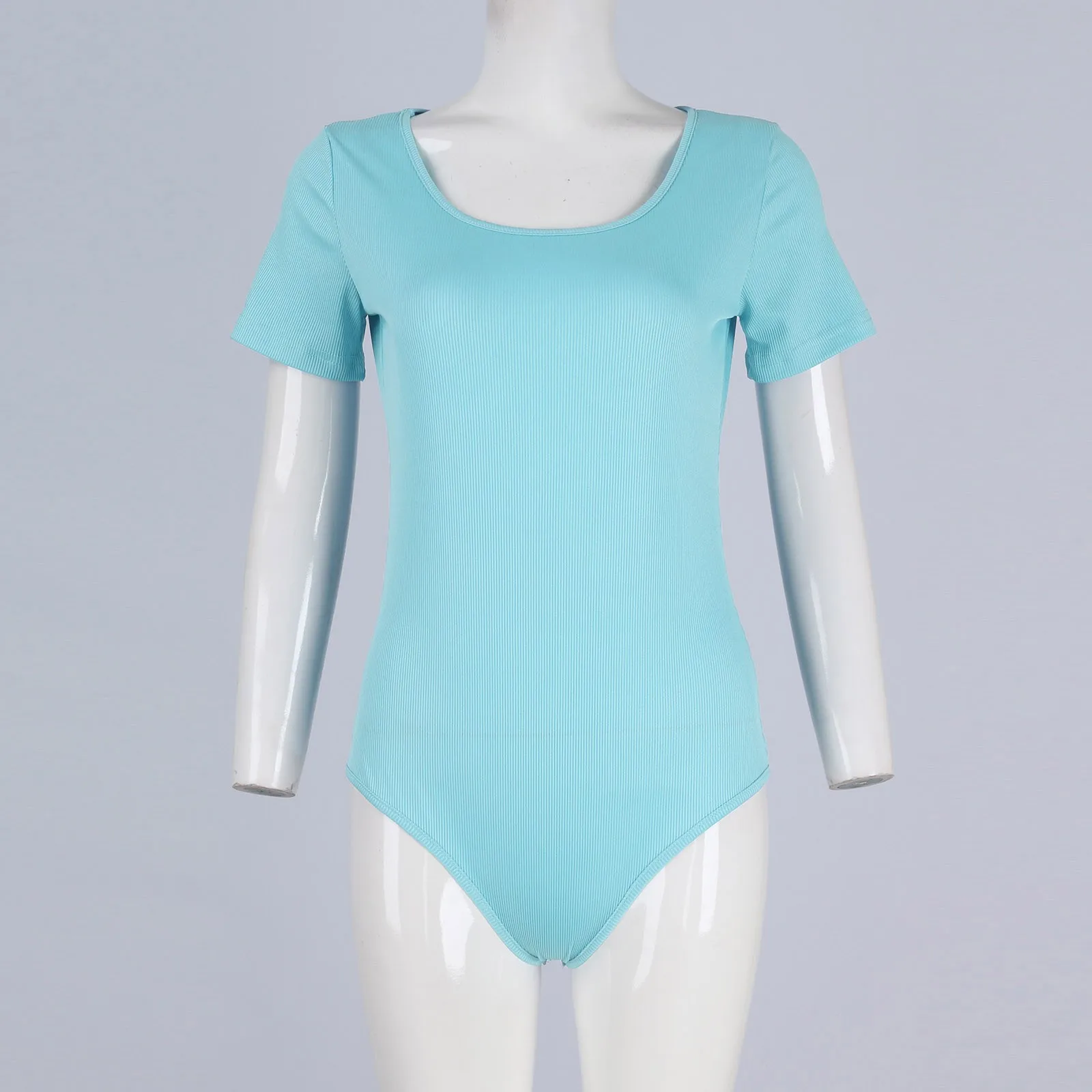 Women's Regular Fit Casual Fashion Sexy Solid Color Snap Button Ribbed Short Sleeve Slim Fit Bodysuit