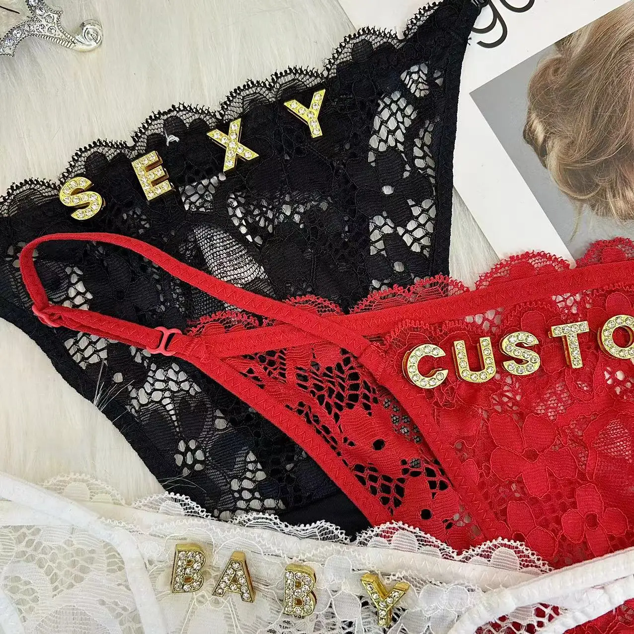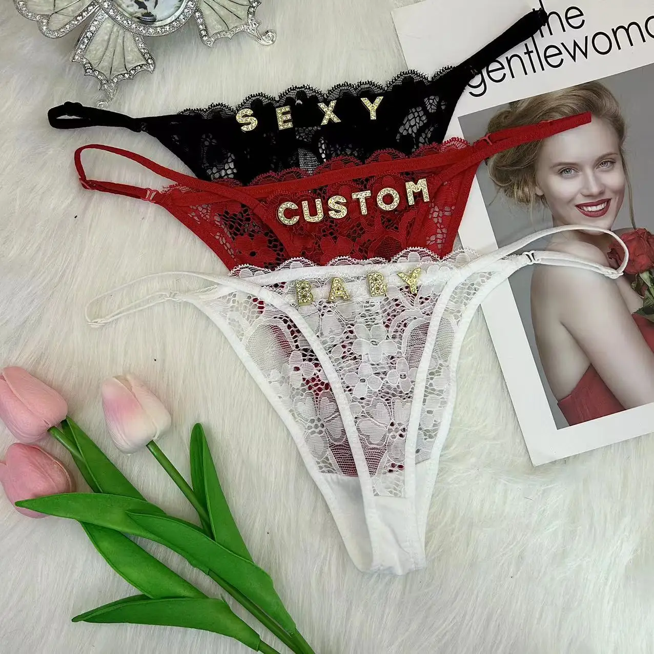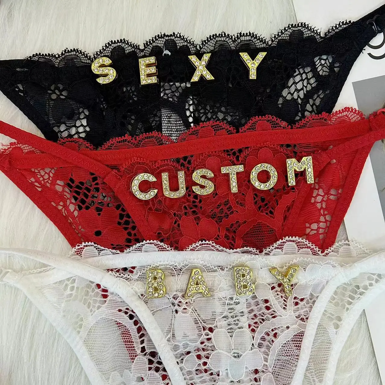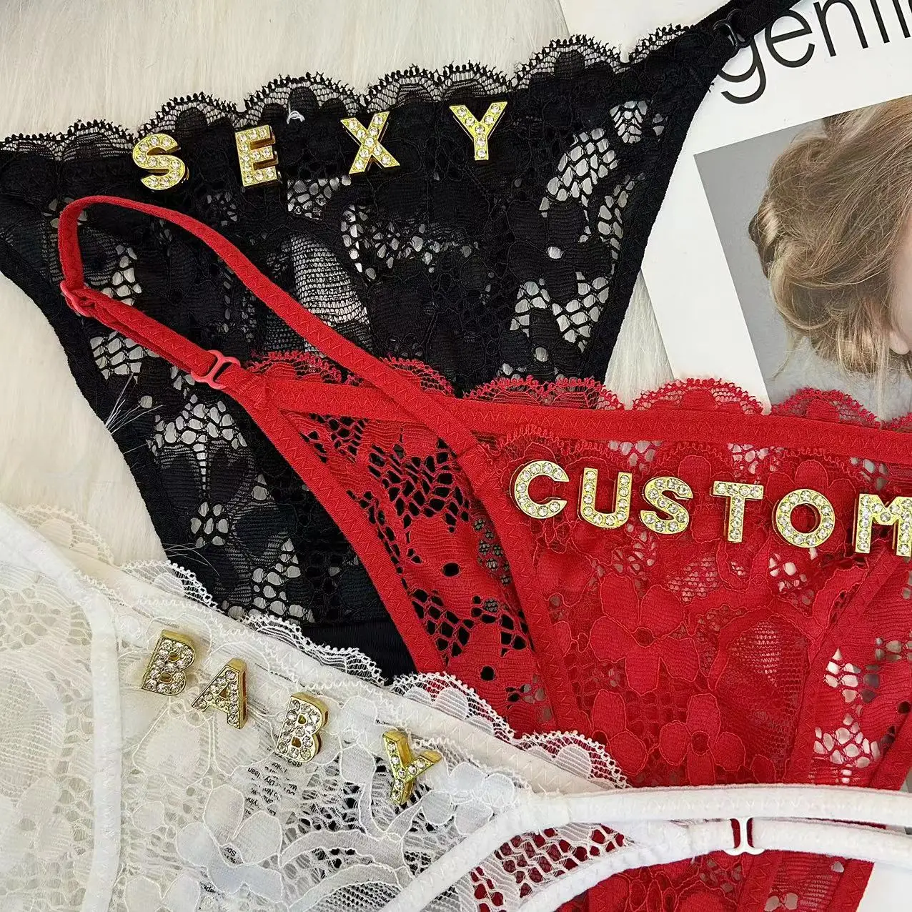 Custom Name Thong Shinny Letters Women Customized Lace Panties G-string Personalized Name Daddy Thongs His Name Underwear