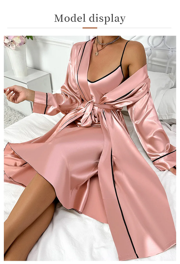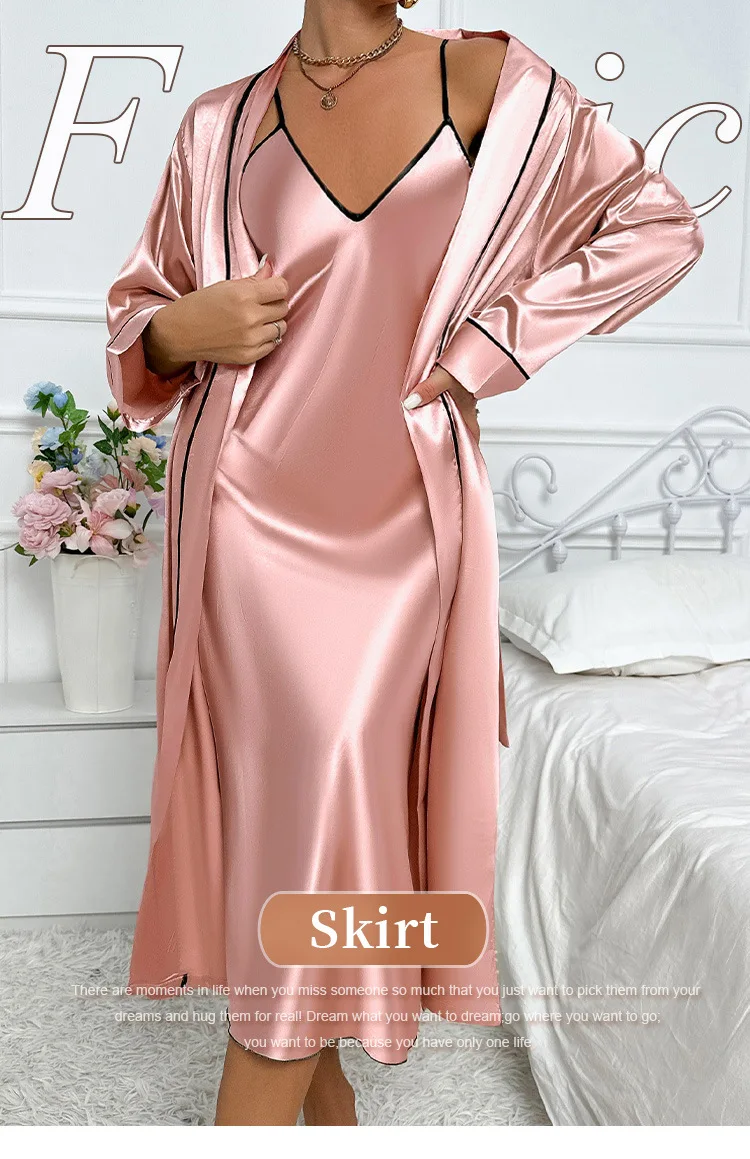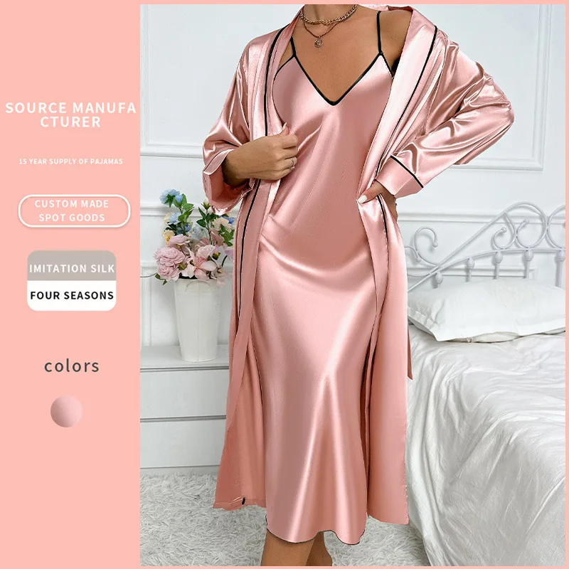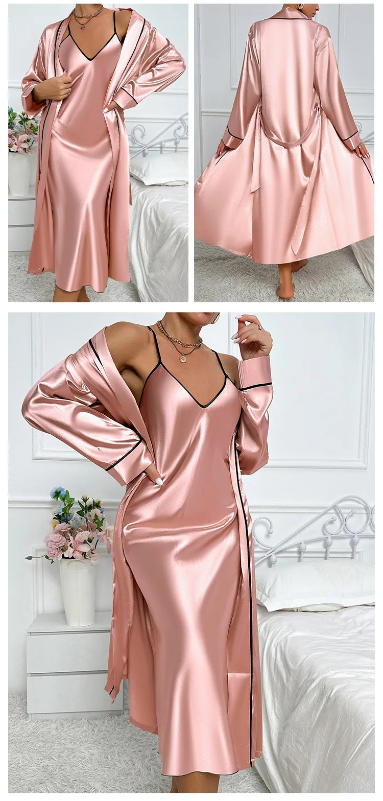 Female Long Robe Nightgown 2PCS Set Pink Elegant Wedding Dressing Kimono Bathrobe 2025 Spring New Sleepwear Home Wear Loungewear