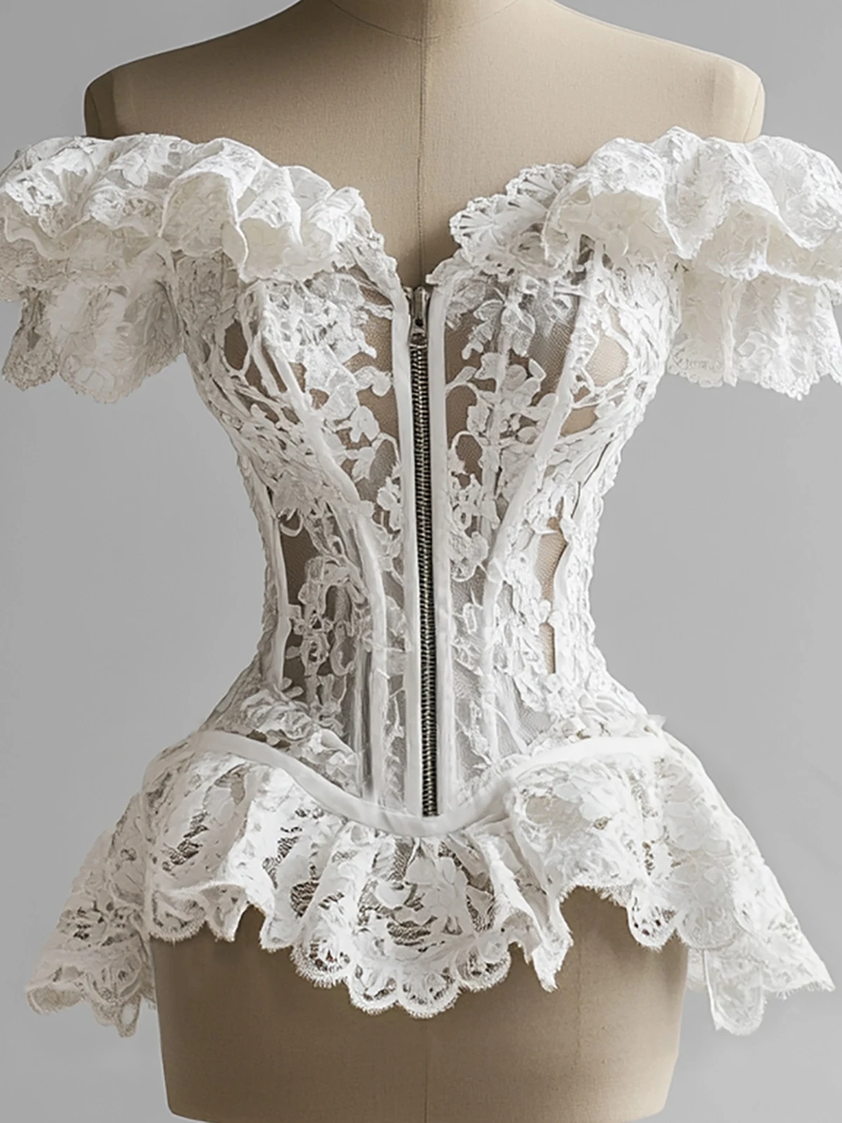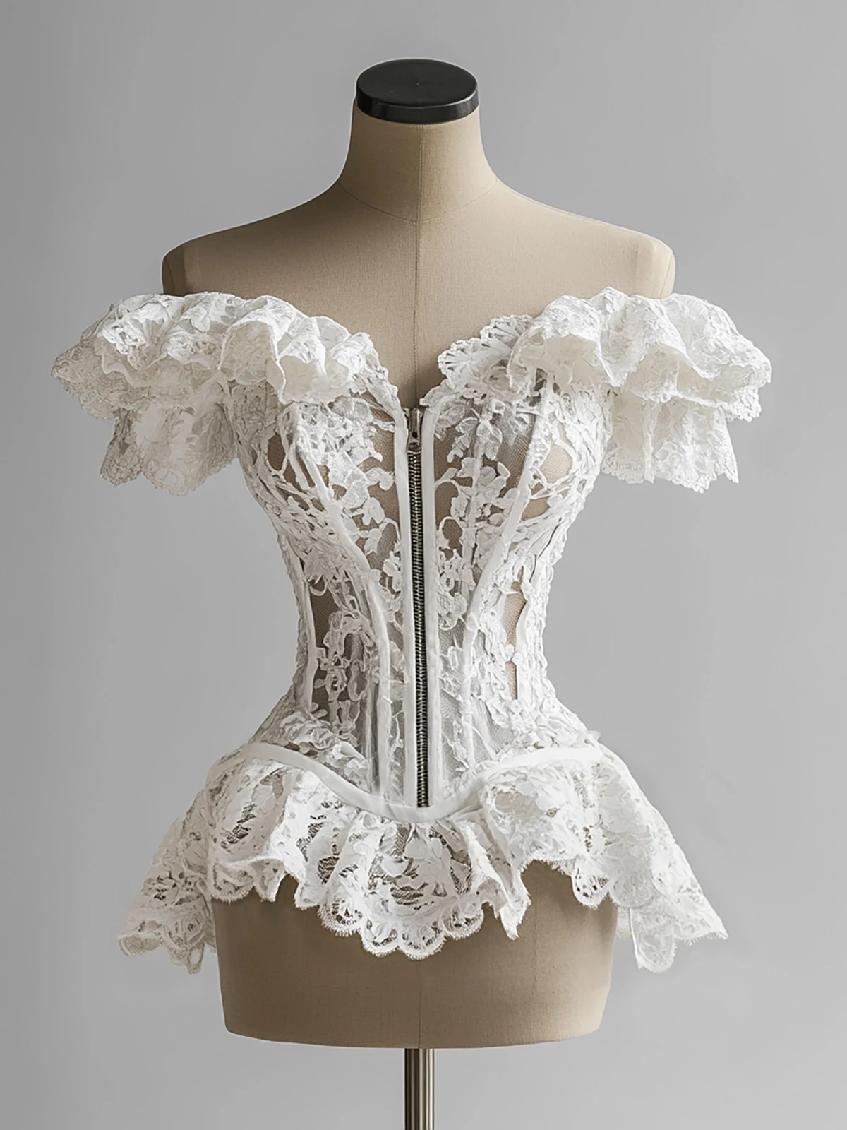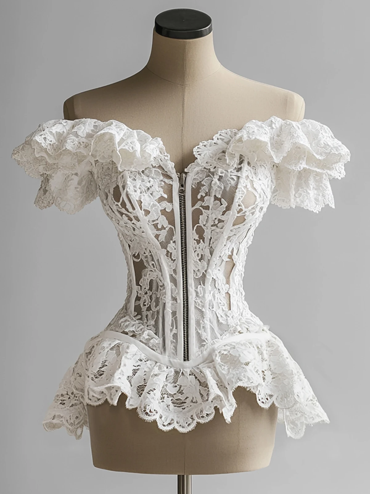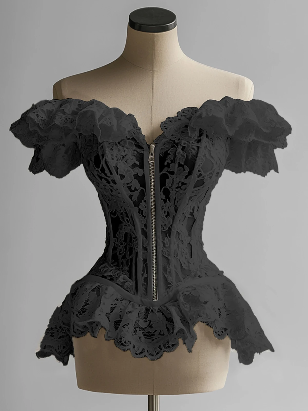 French Corset Women’s Blouse Lace Ruffle Off Shoulder Zip Up Tube Tops Bustier Overbust Waist Slimming Strapless Tube Female Top