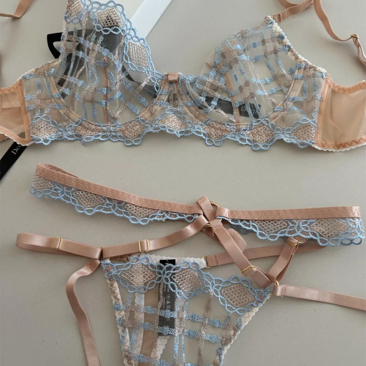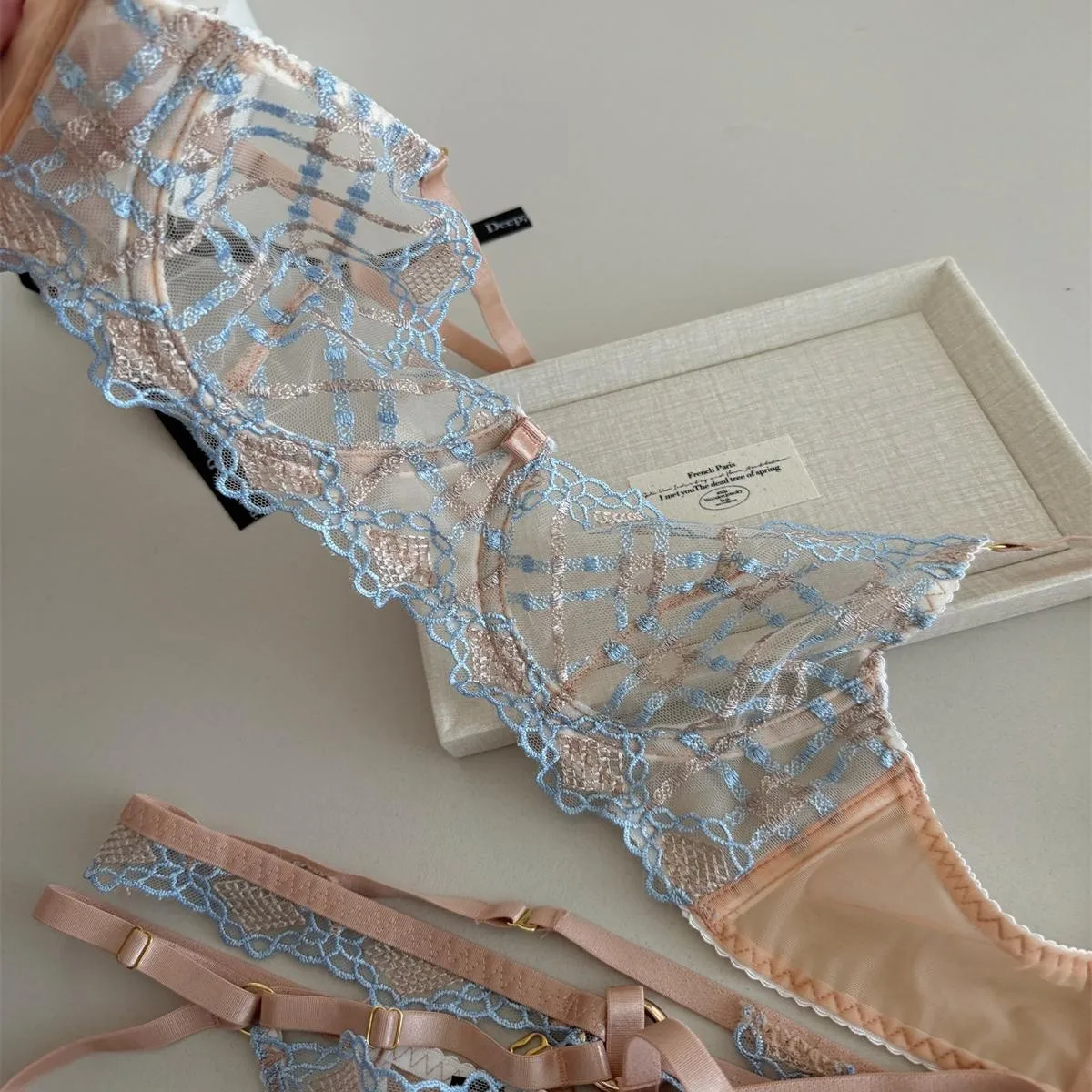 French style charming lace niche silk thin style sexy thin style steel ring support gathering bra set bra thong