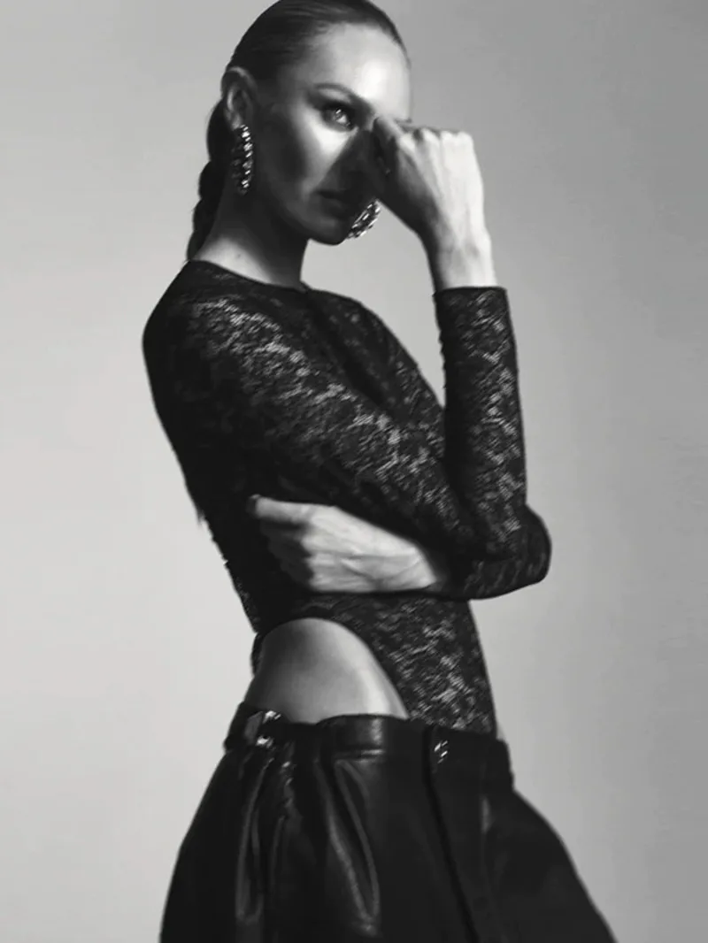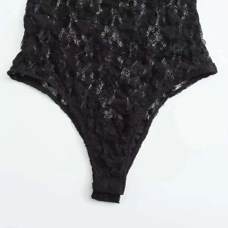 Lace Bodysuit Women’s Bodysuit Auutmn Black Cutwork O-Neck Long Sleeves High Spandex Bodysuits Sexy Lingerie For Fine Women L5QW
