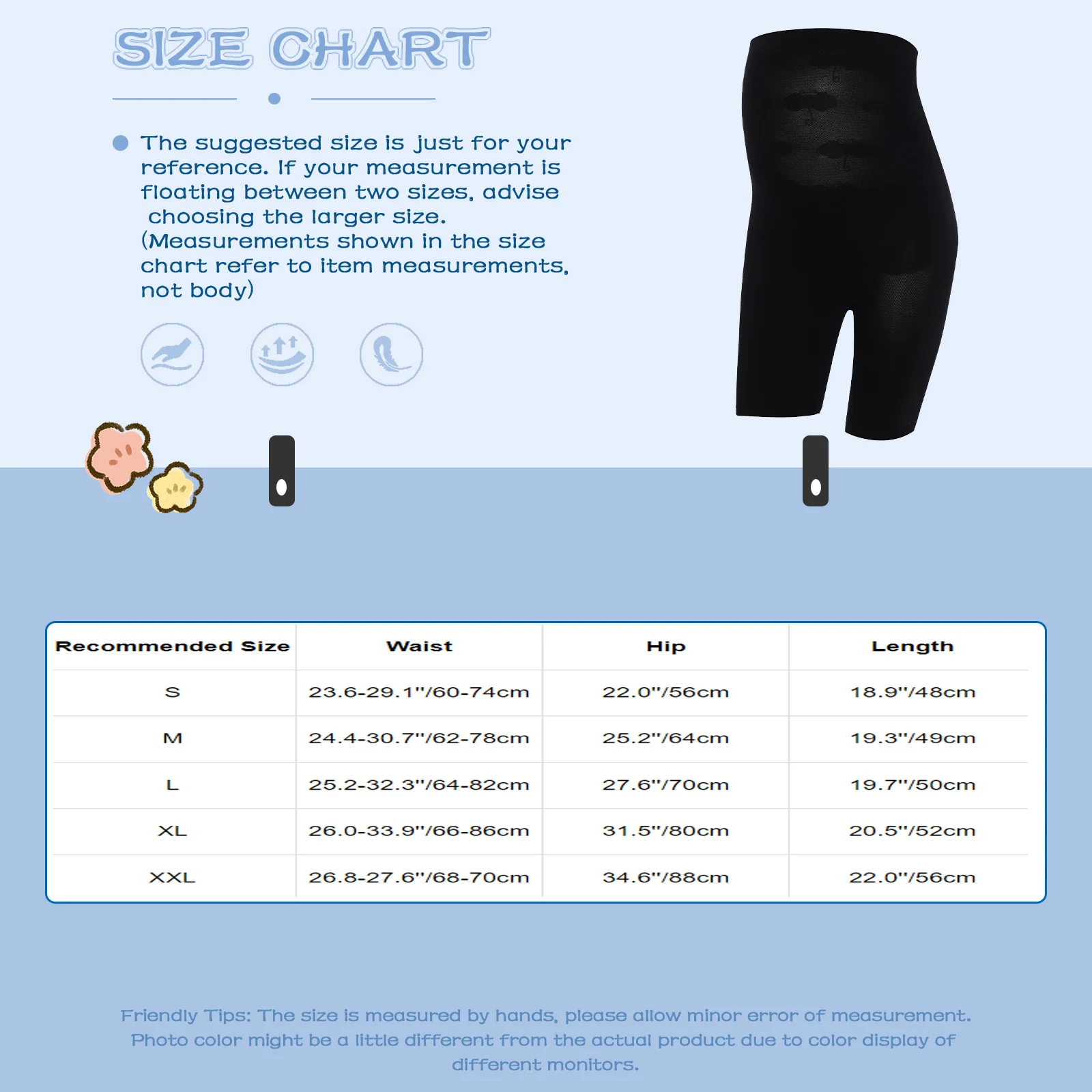 The suggested size is just for your reference. If your measurement is floating between two sizes, advise choosing the larger size.