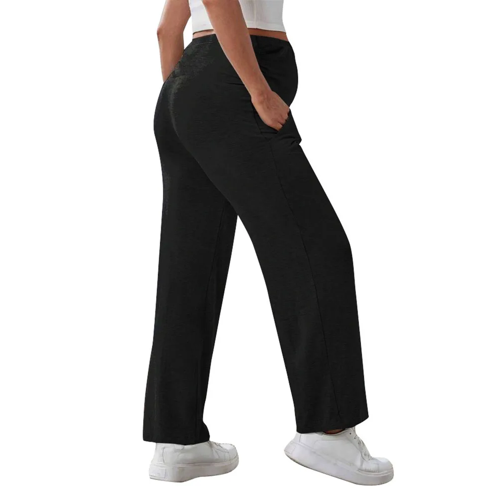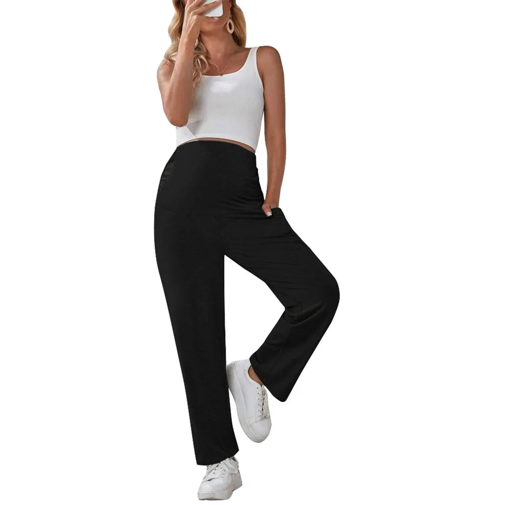 Maternity Pants Over The Belly Yoga Dress Work Pregnancy Pants Stretchy Lounge Wide Leg Trousers with Pockets