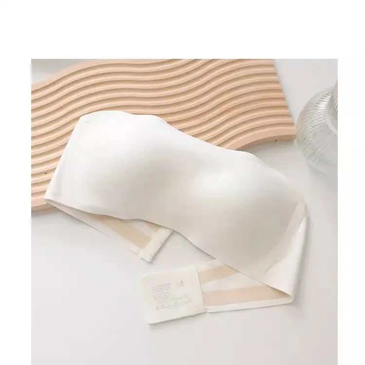 No-Slip Strapless Bra for Women Comfortable Gathered Dance Party Underwear Invisible Side-Bust Control Nylon Fabric 3/4 Cup