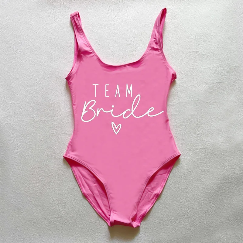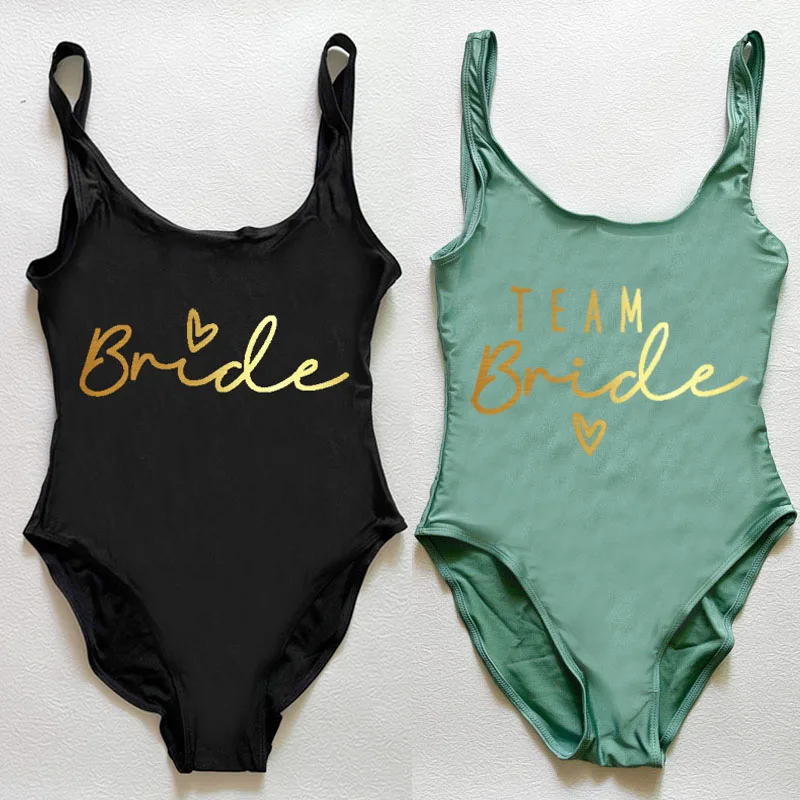 S-3XL One-Piece Swimsuit Women Team Bride Summer Swimwear Higt Cut Low Back Bathing Suit Bachelor Party Swimming Suit Beachwear
