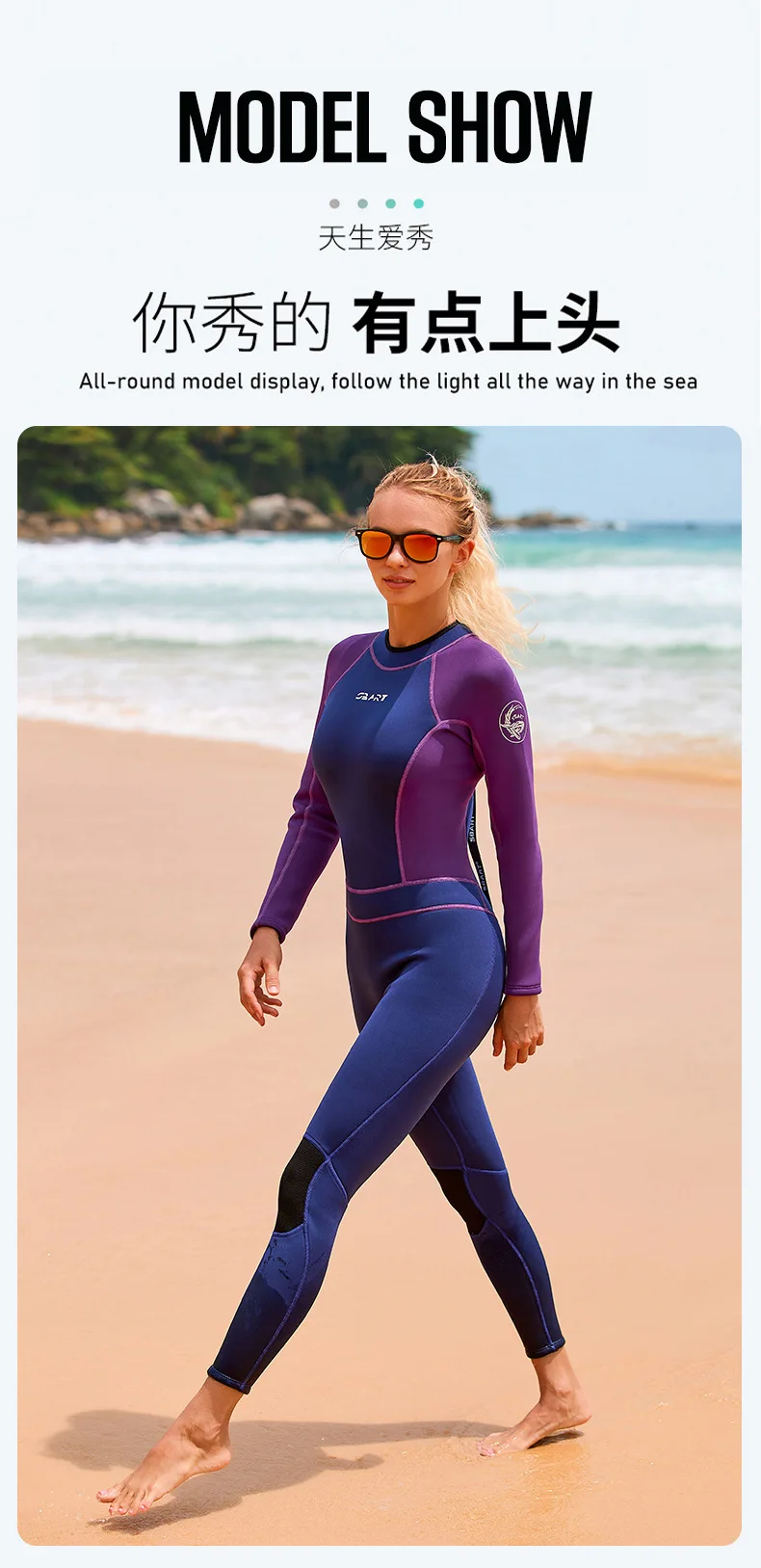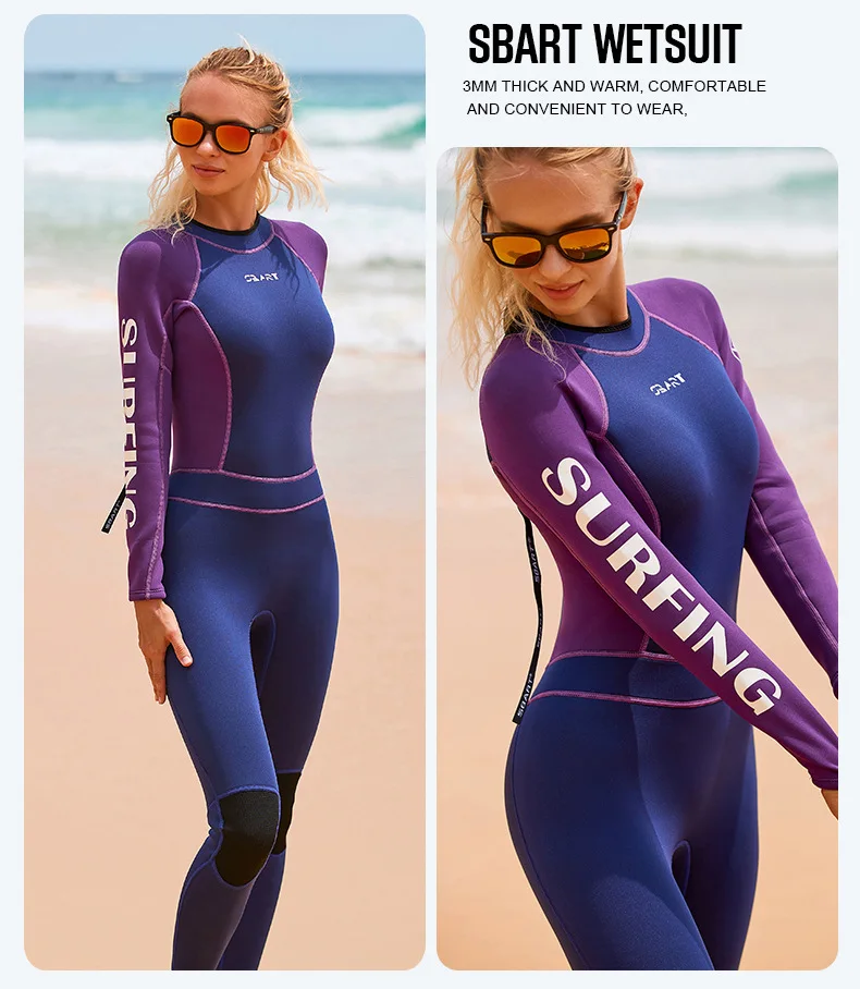 SBART 3MM Women’s One Piece Back Zipper Jellyfish Coat Cold and Warm Long Sleeve Diving Swimming Suit Winter Swimming Wetsuit