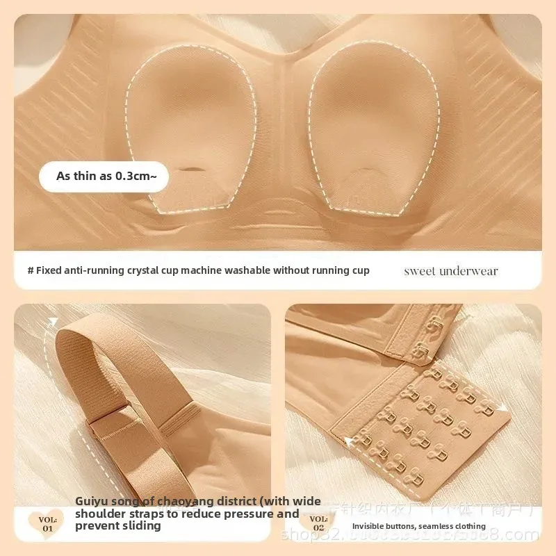 Seamless Rabbit Ear One-Piece Bra Vest Women’s Underwear Gathered Small Chest No Wire Strap Vest Eliminates Side Breast