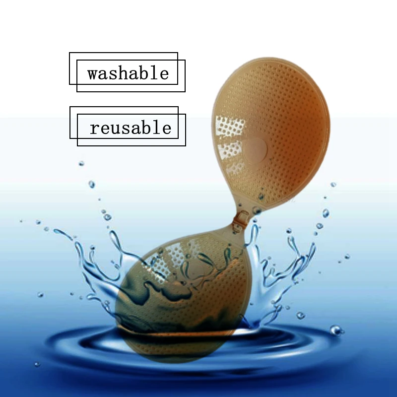 1. Holding one sticky bra cup in the palm of your hand, wet the adhesive surface with warm water and clean it with mild soap. Gently clean it with hand palm in a circular motion.
