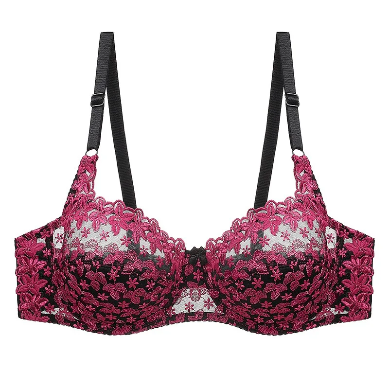 Sexy Lace Embroidery Bra Ultra-thin Cup Sexy Lingerie CD Cup Big Bra Women’s Underwear Femme Large Size Transparent Brassiere
