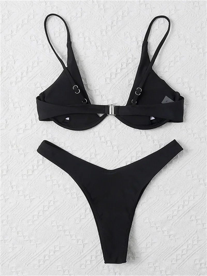 Sexy Underwire Bikini 2025 Mujer Women Solid Red Push Up Bra Thong Swimsuit Haler V Neck Bathing Suit Mini Micro Thong Swimwear