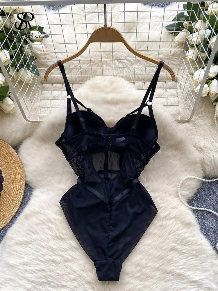SINGREINY Women Corset Slim Sexy Bodysuits Sleeveless Gauze Short Playsuits Fashion Open crotch Underwear Camis Solid Rompers