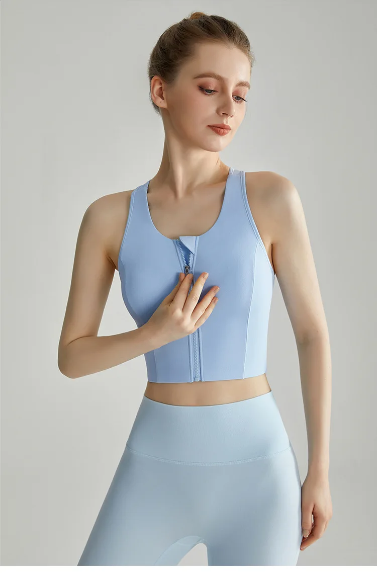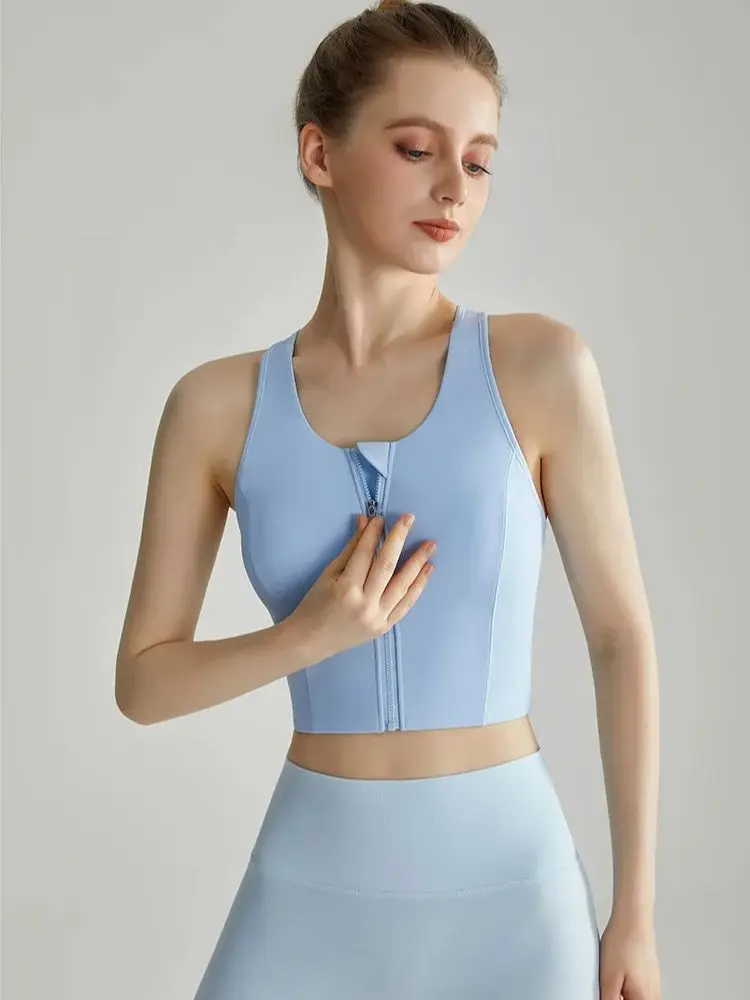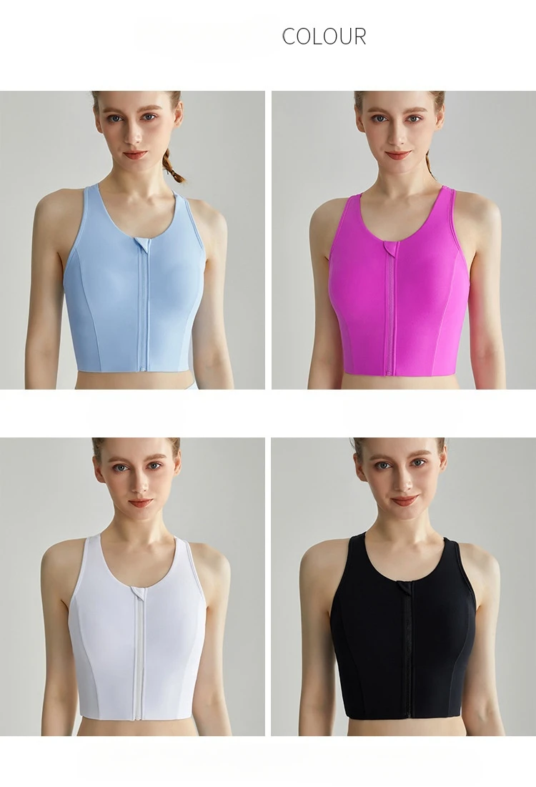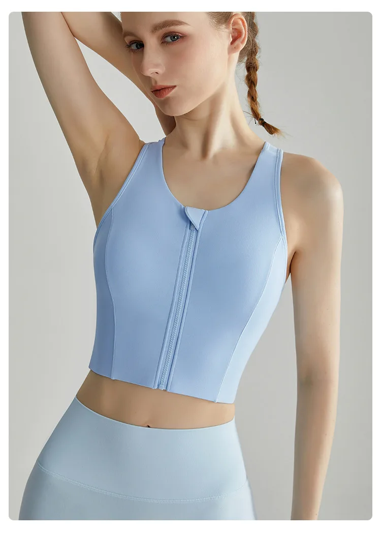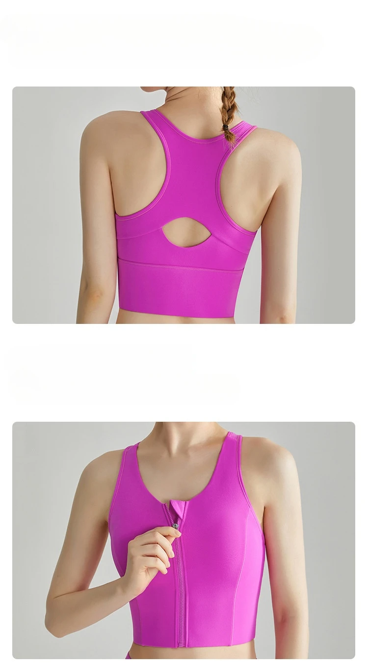 Sports Bra High Strength Shockproof Front Zipper Integrated Fixed Cup I-Shaped Beautiful Back Sports Bra