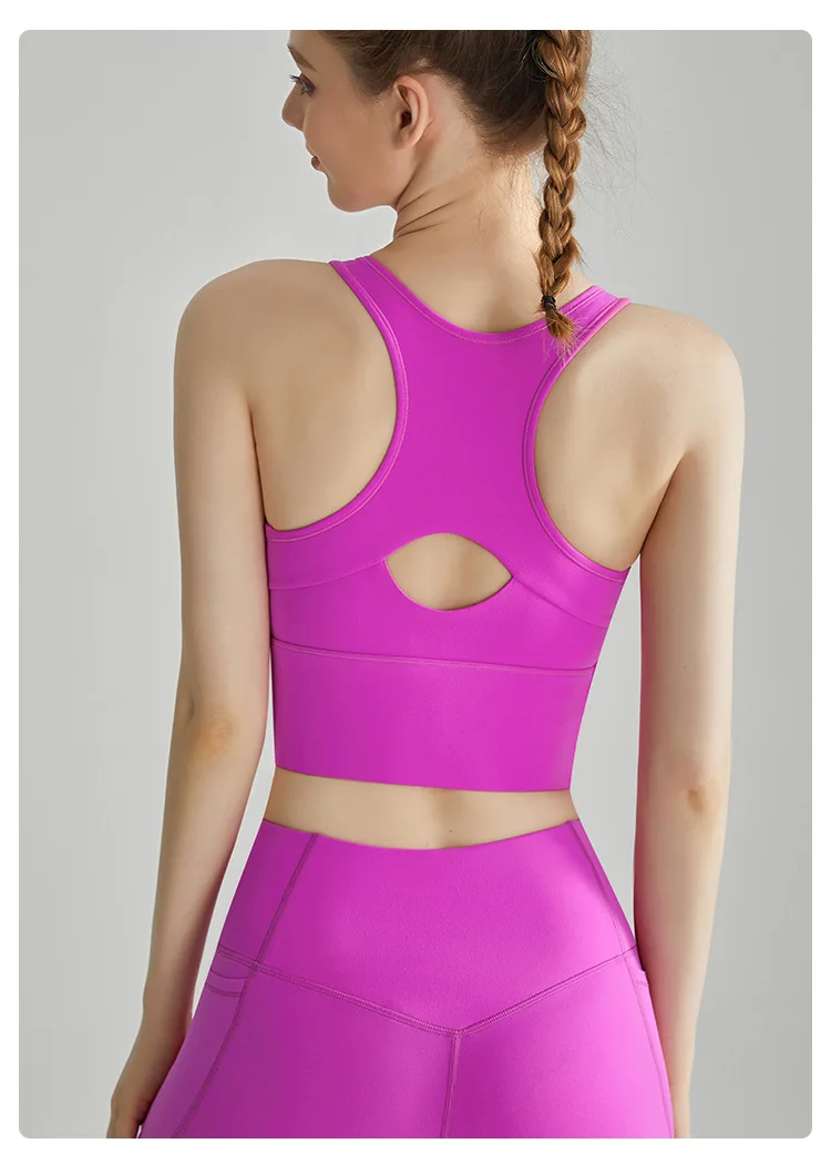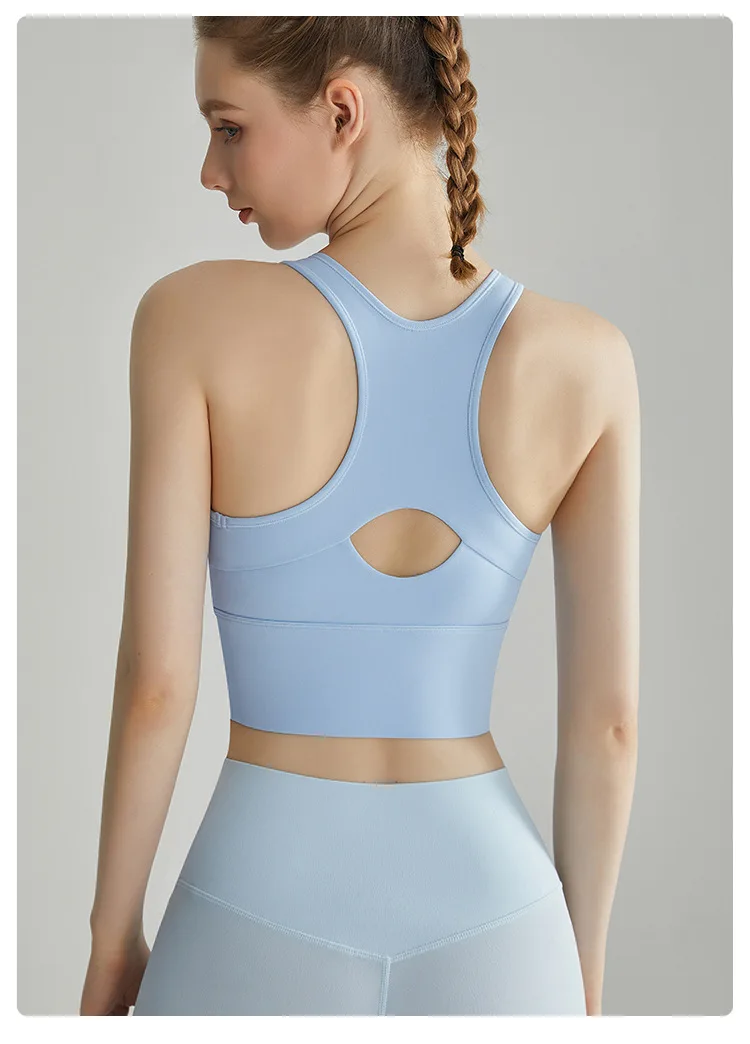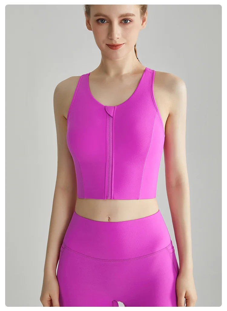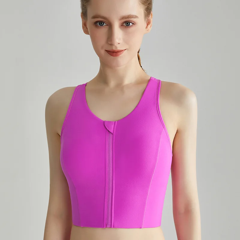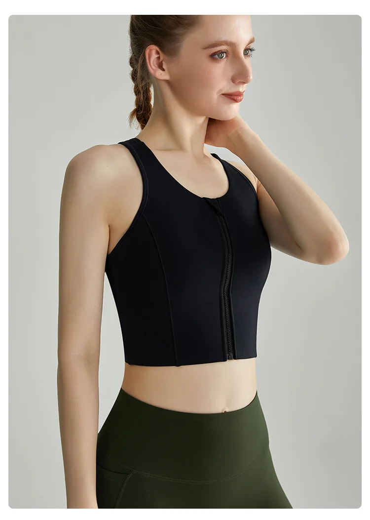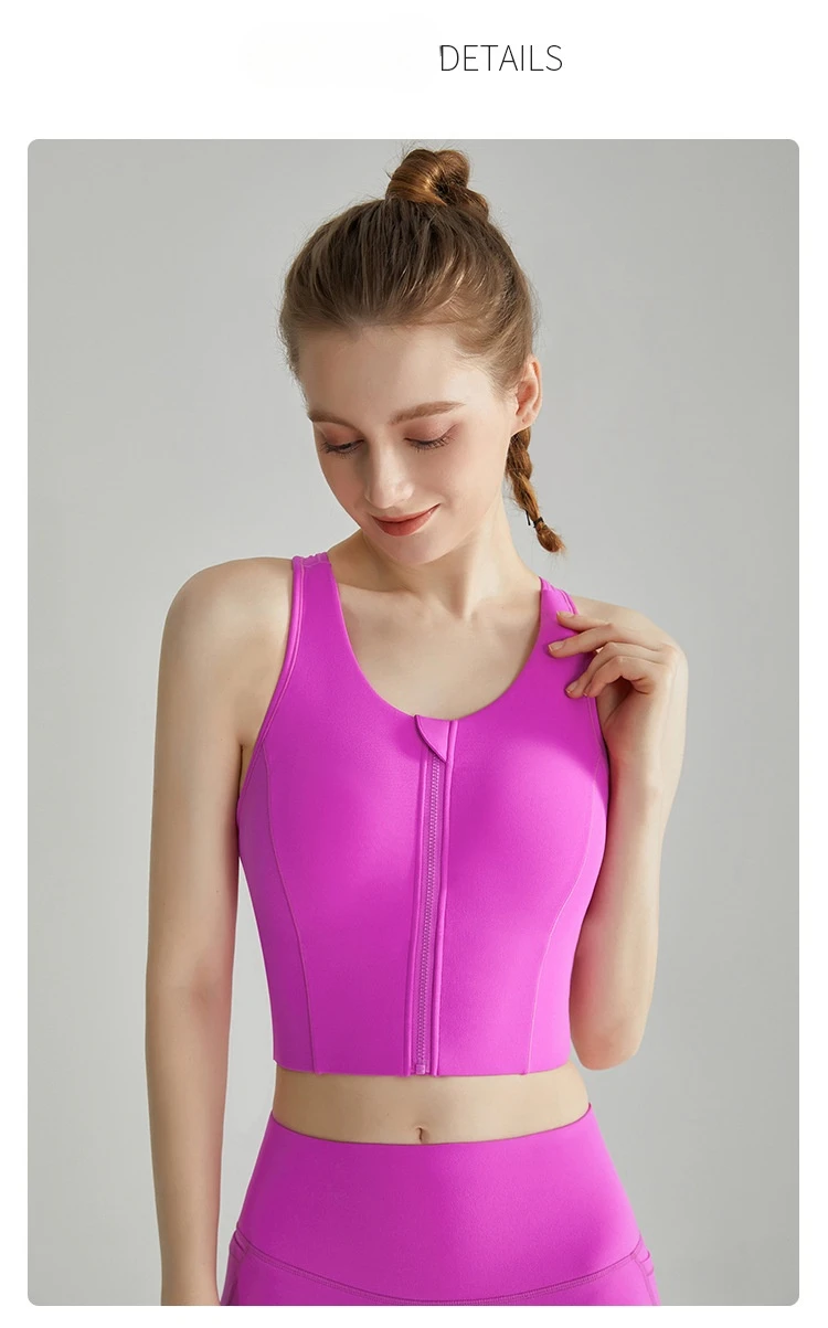 Sports Bra High Strength Shockproof Front Zipper Integrated Fixed Cup I-Shaped Beautiful Back Sports Bra