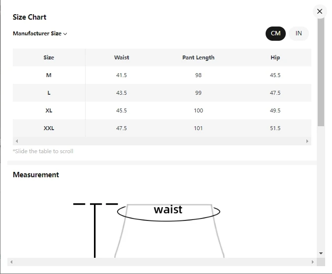 Size chart(measurement unit:cm):