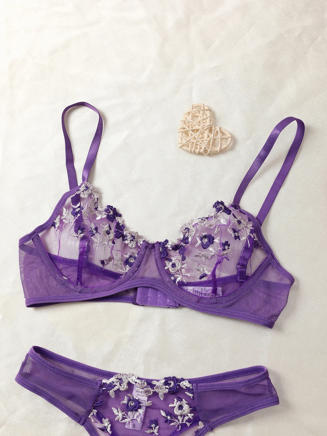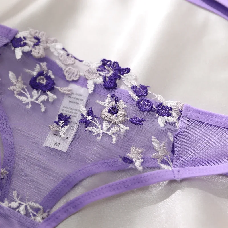Sujetadores Sexy Lingerie Woman Lace Transparent Underwear Fairy Embroidery Brief Sets Bra Kit Push Up Breves Thin Erotic Bras