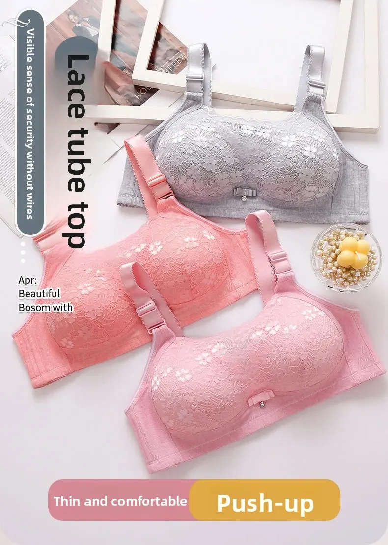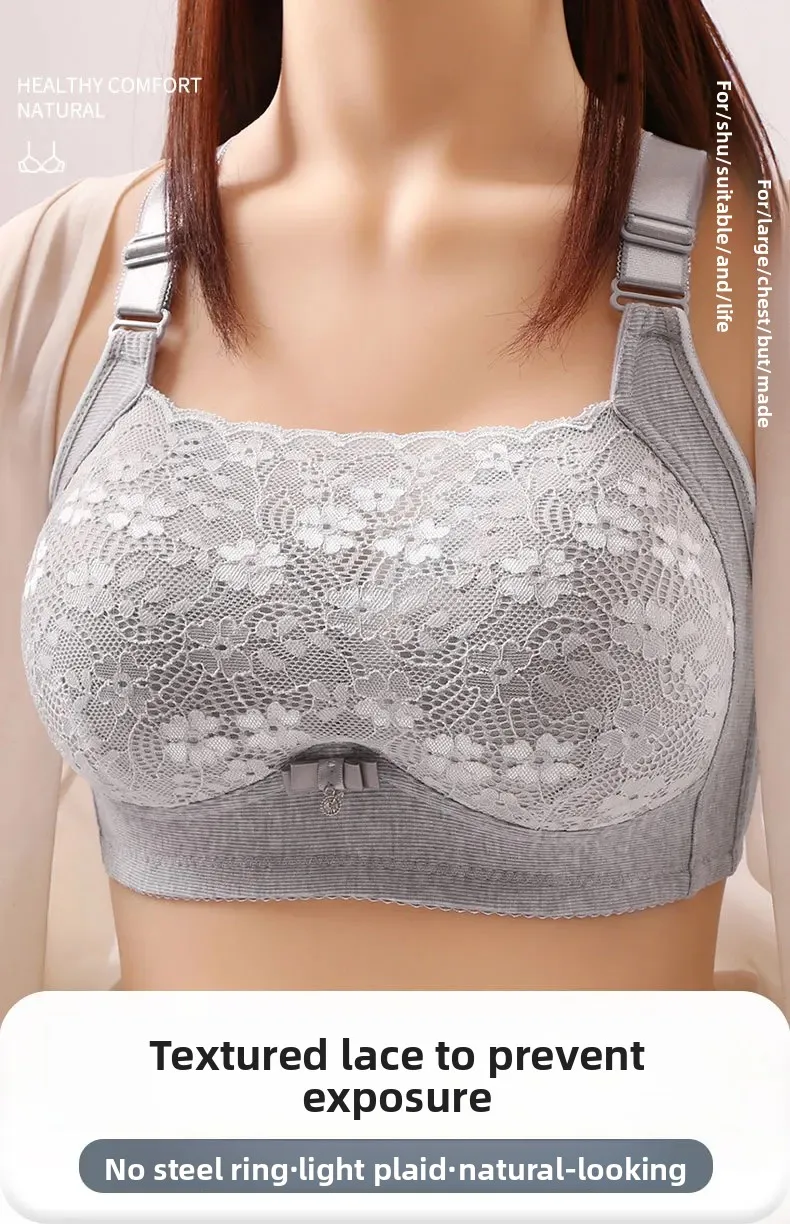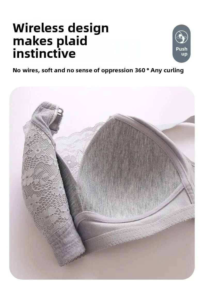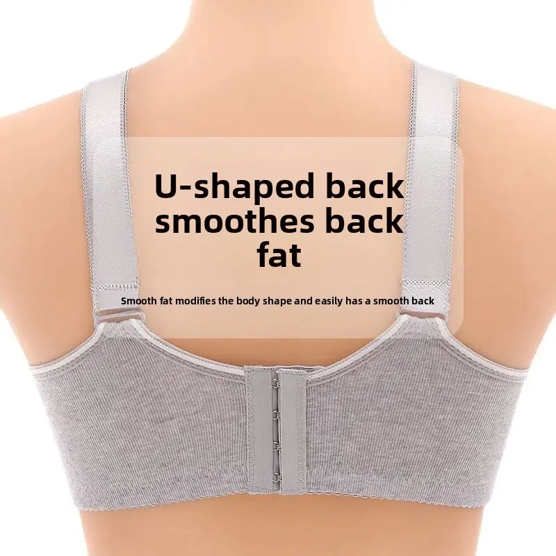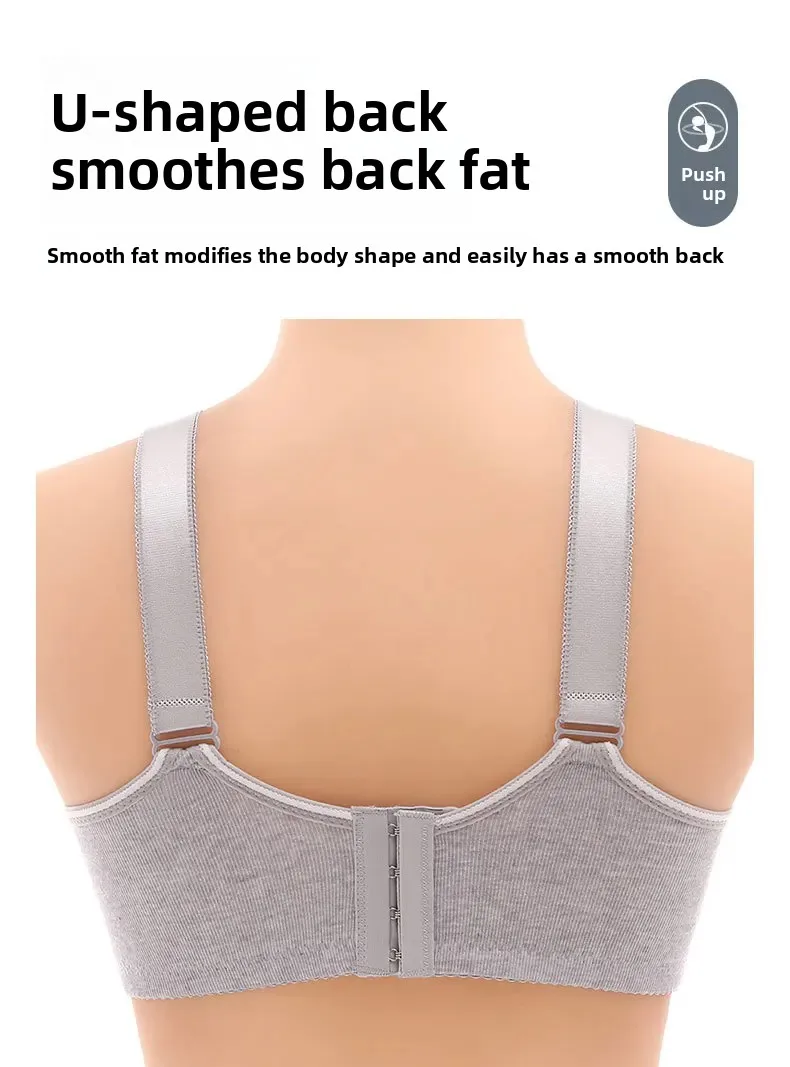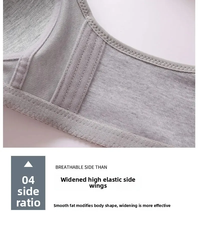 Wireless Large Size Thin Ladies Underwear with Wide Straps Anti Exposure Chest Belt Gathered Push up Bra Cotton Material
