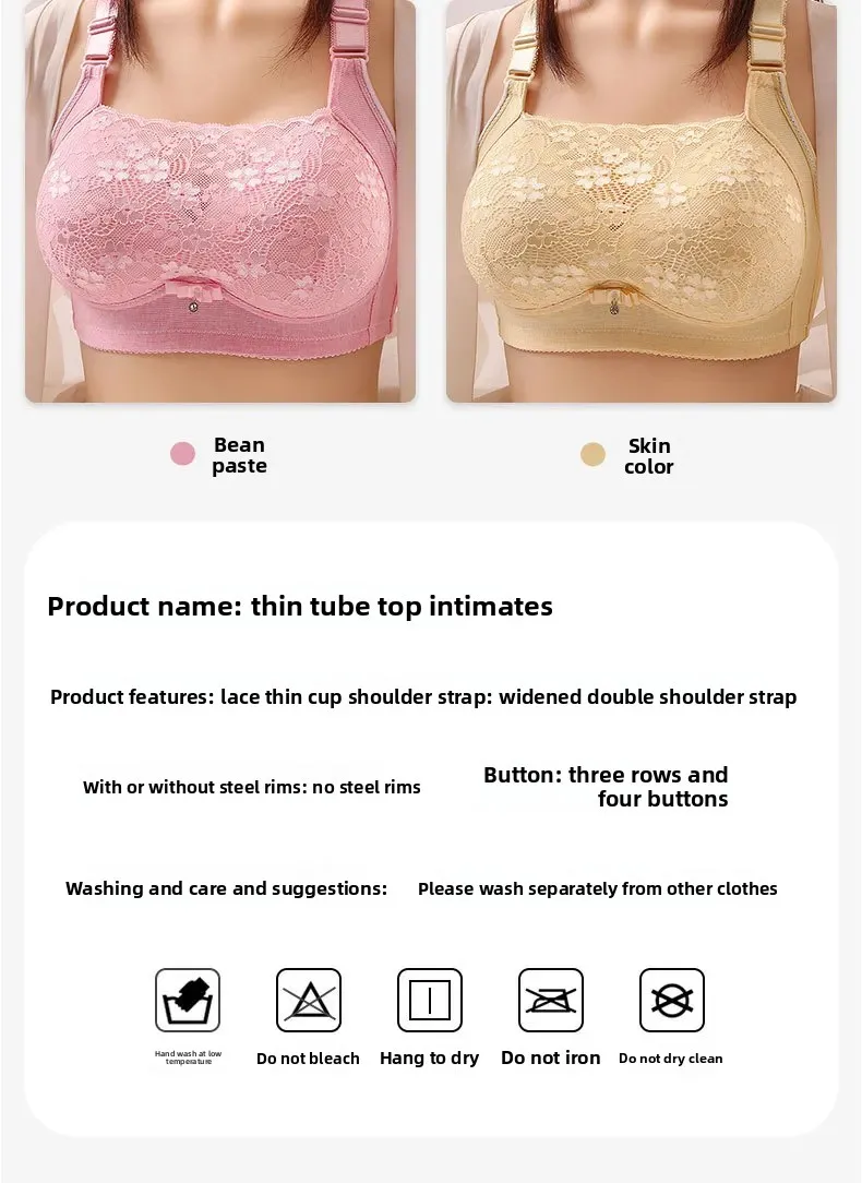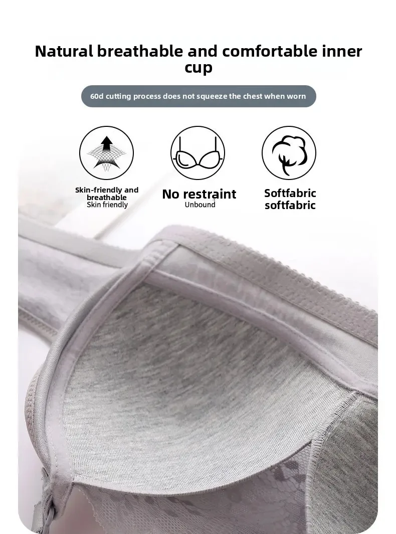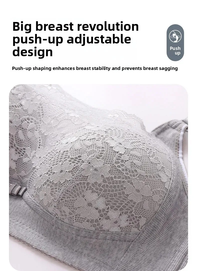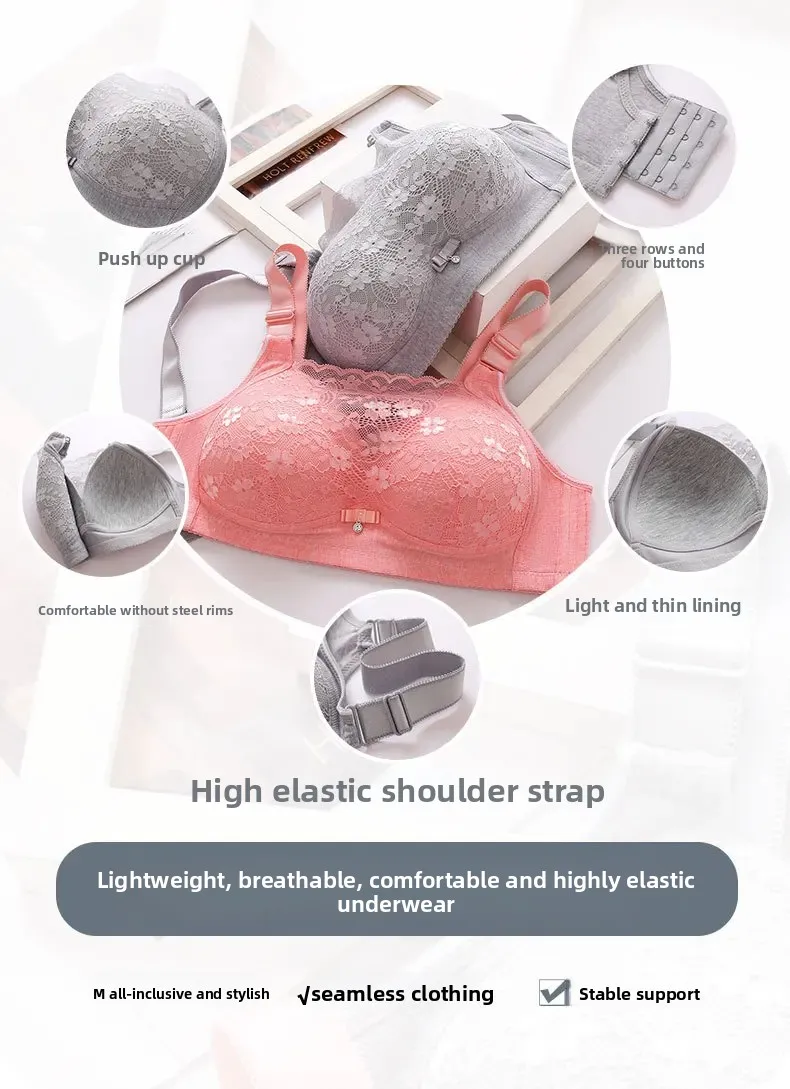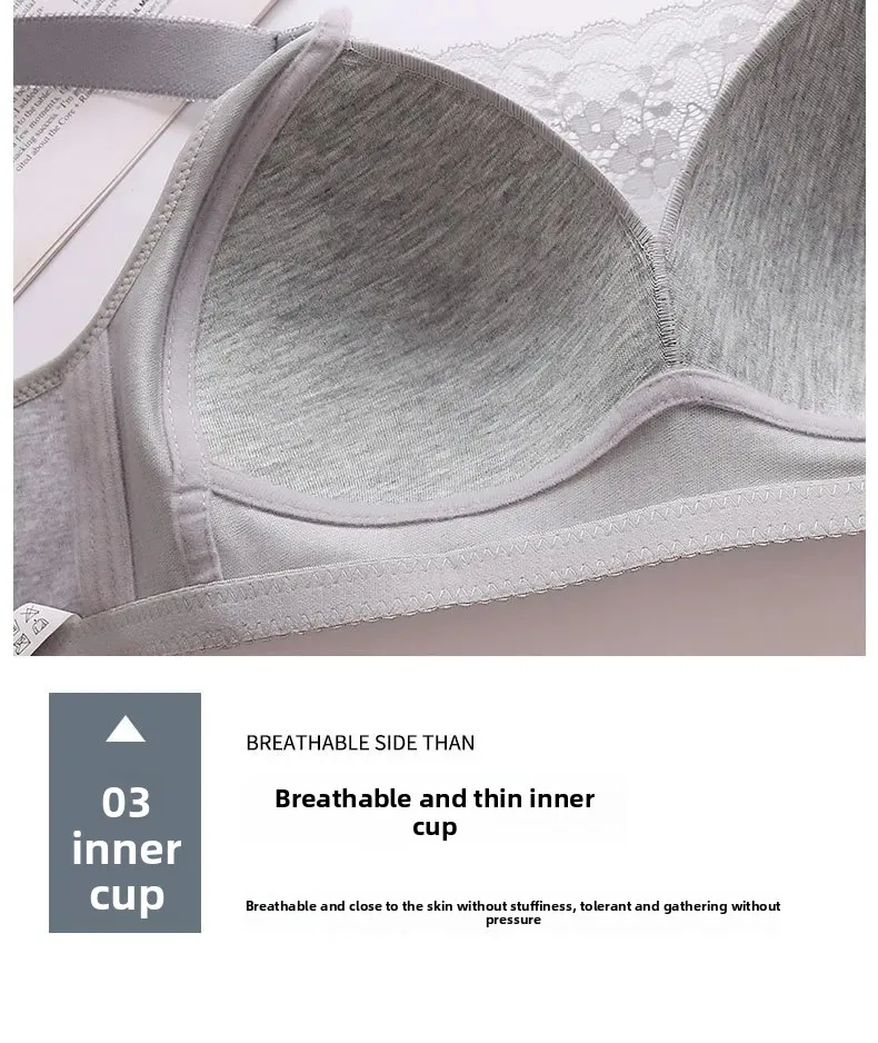 Wireless Large Size Thin Ladies Underwear with Wide Straps Anti Exposure Chest Belt Gathered Push up Bra Cotton Material