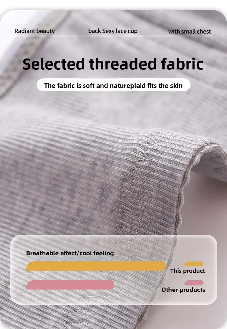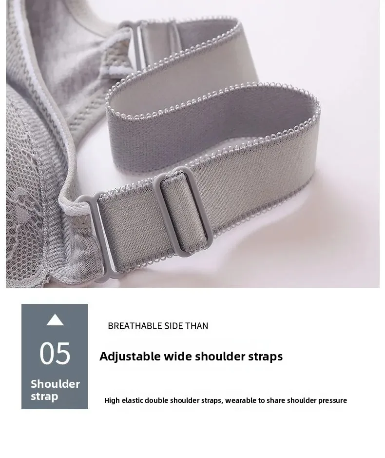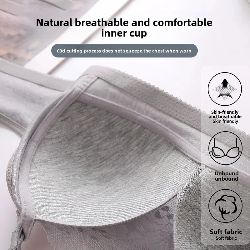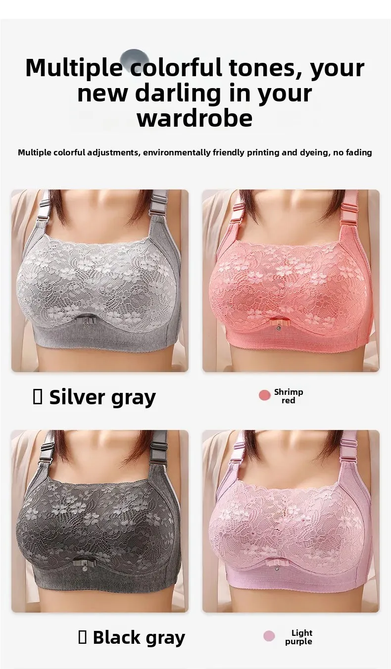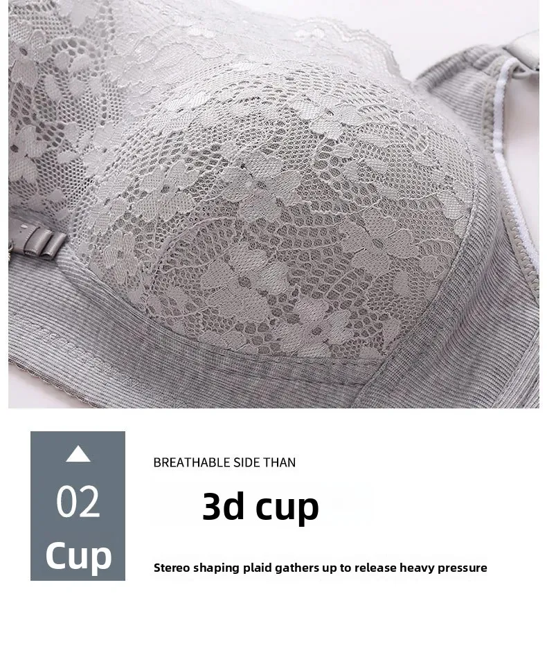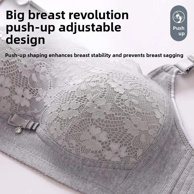 Wireless Large Size Thin Ladies Underwear with Wide Straps Anti Exposure Chest Belt Gathered Push up Bra Cotton Material