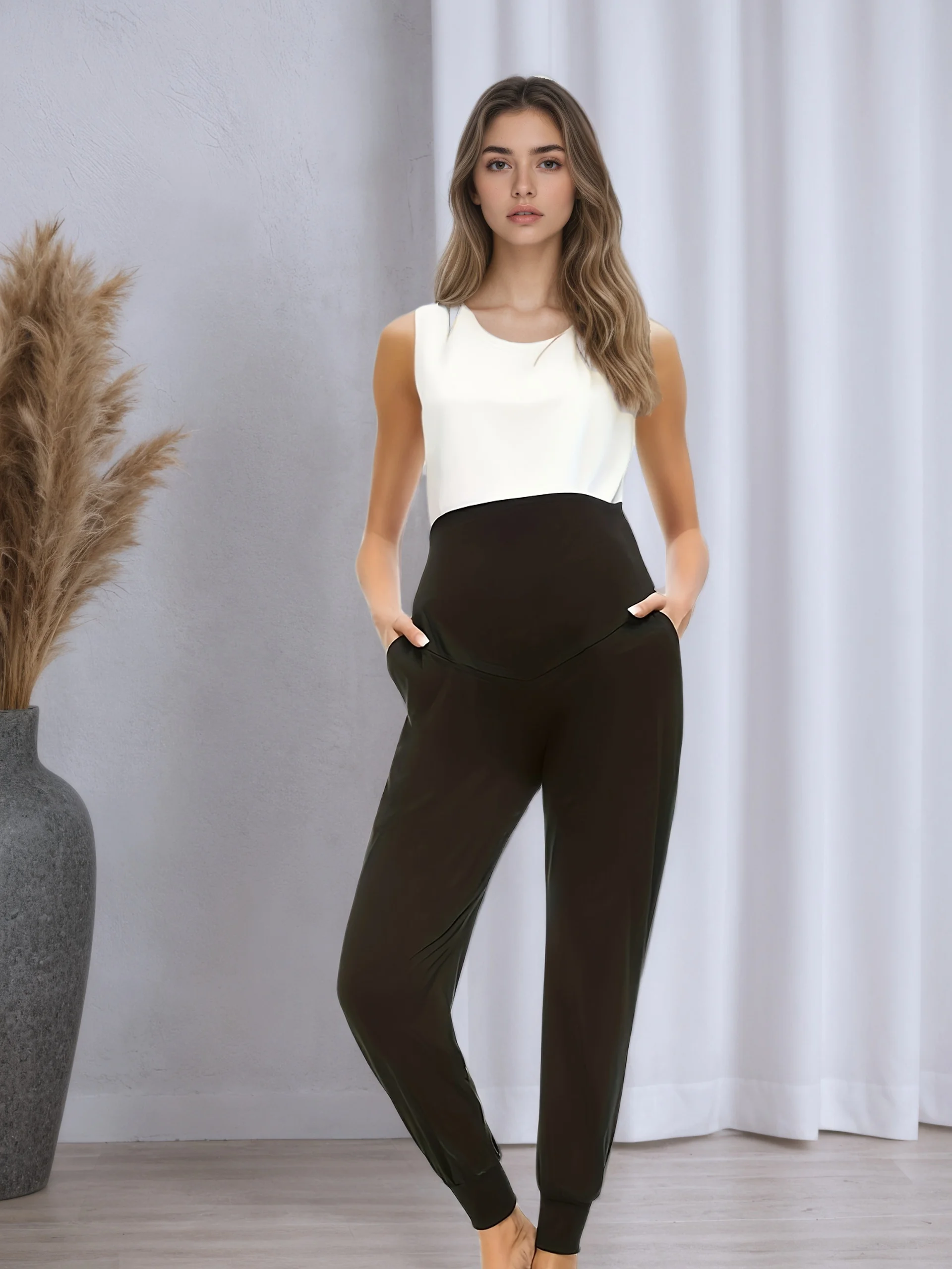 Womens Maternity Jogger Pants Stretchy Comfortable Lounge Pants with Pockets Loose Fit Pregnancy Wear