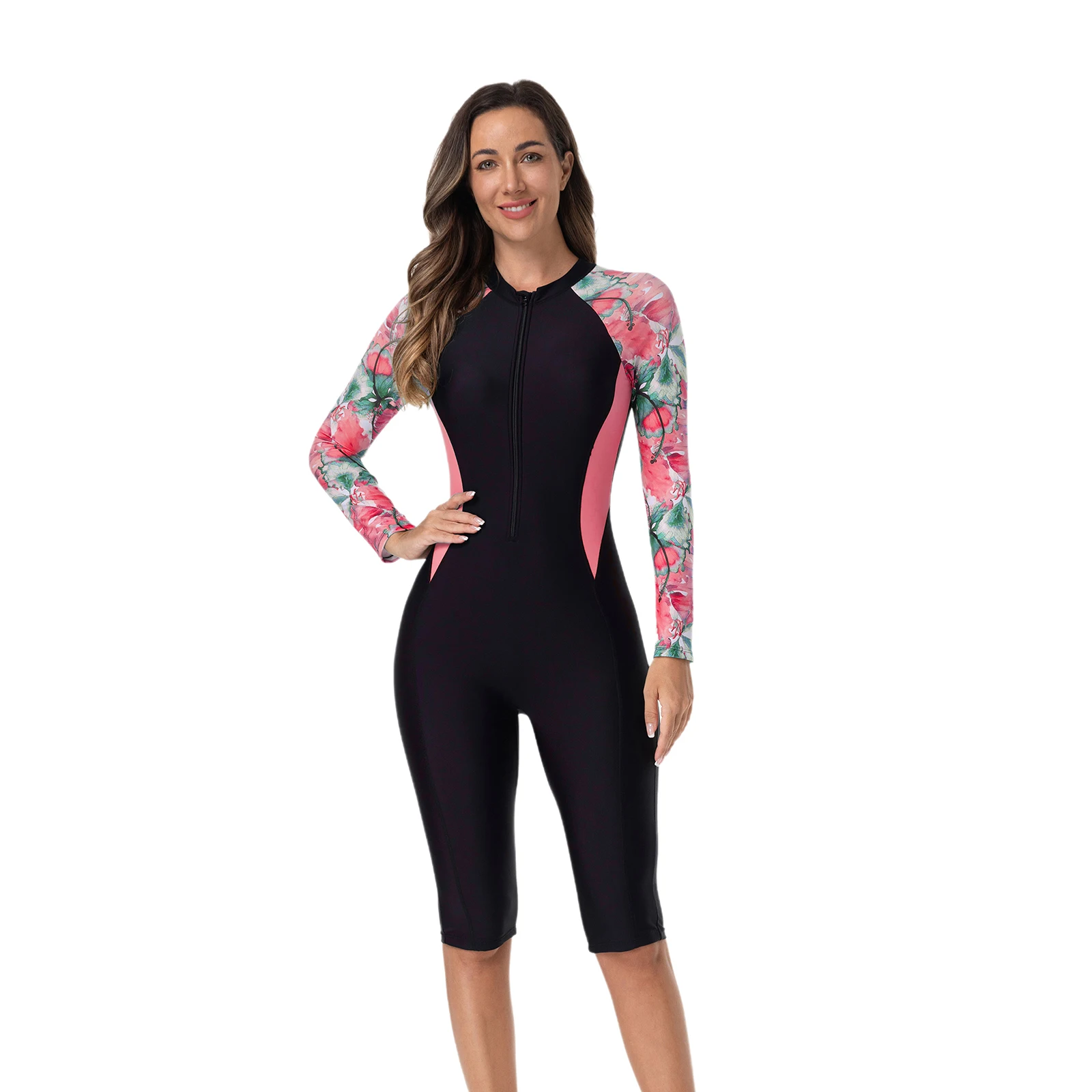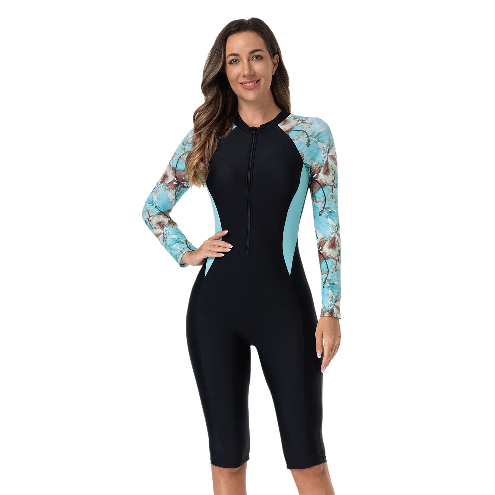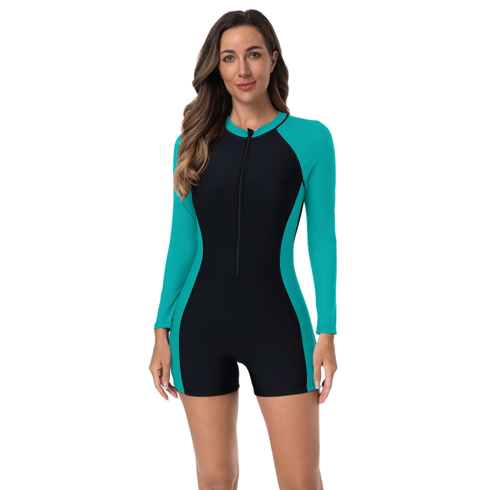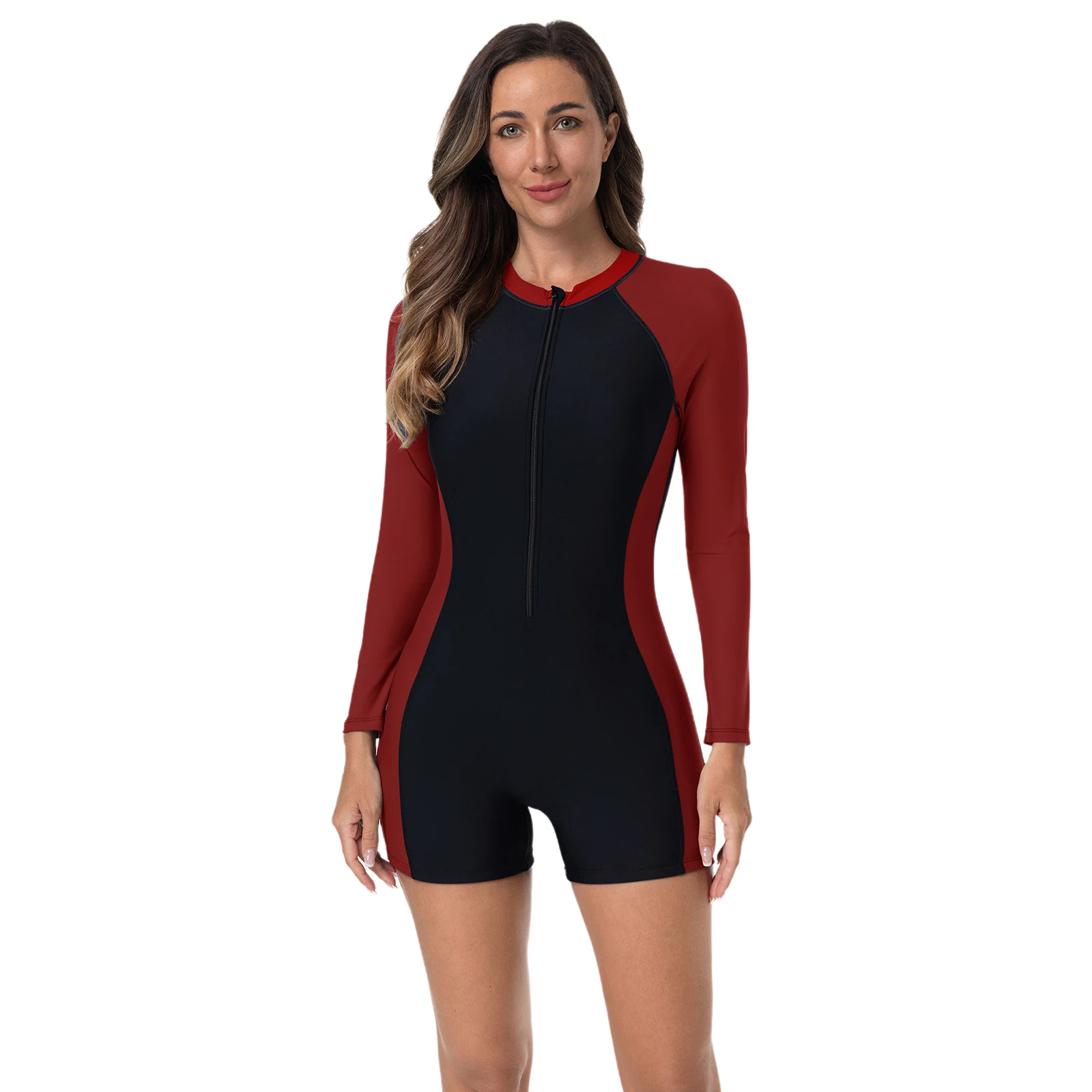 Modest style swimwear, you could decide how spicy you want to be by adjusting front zip. Slim fit and outlines your body figure.