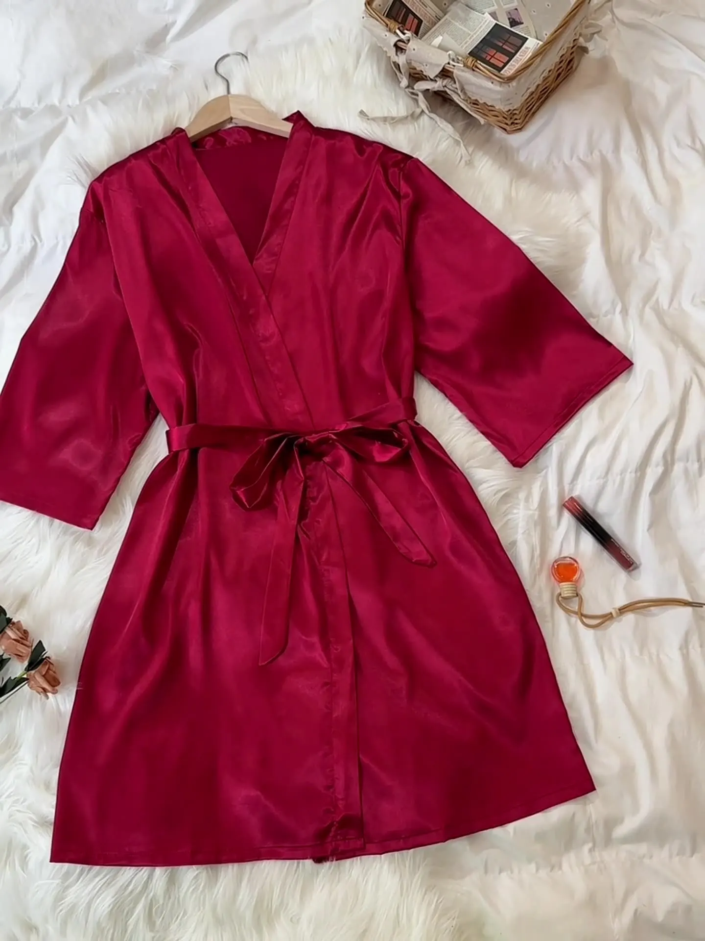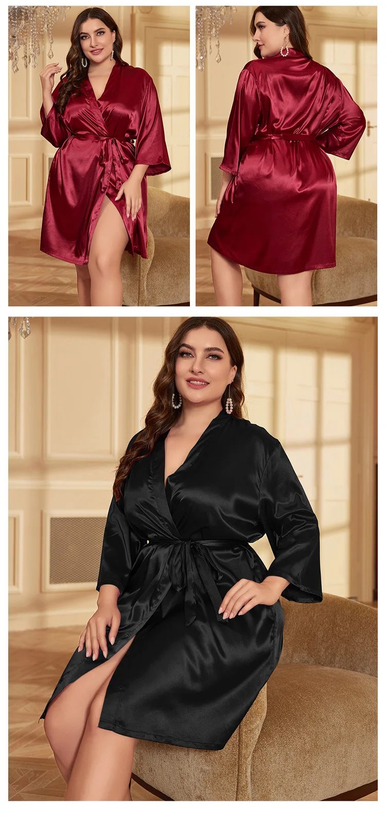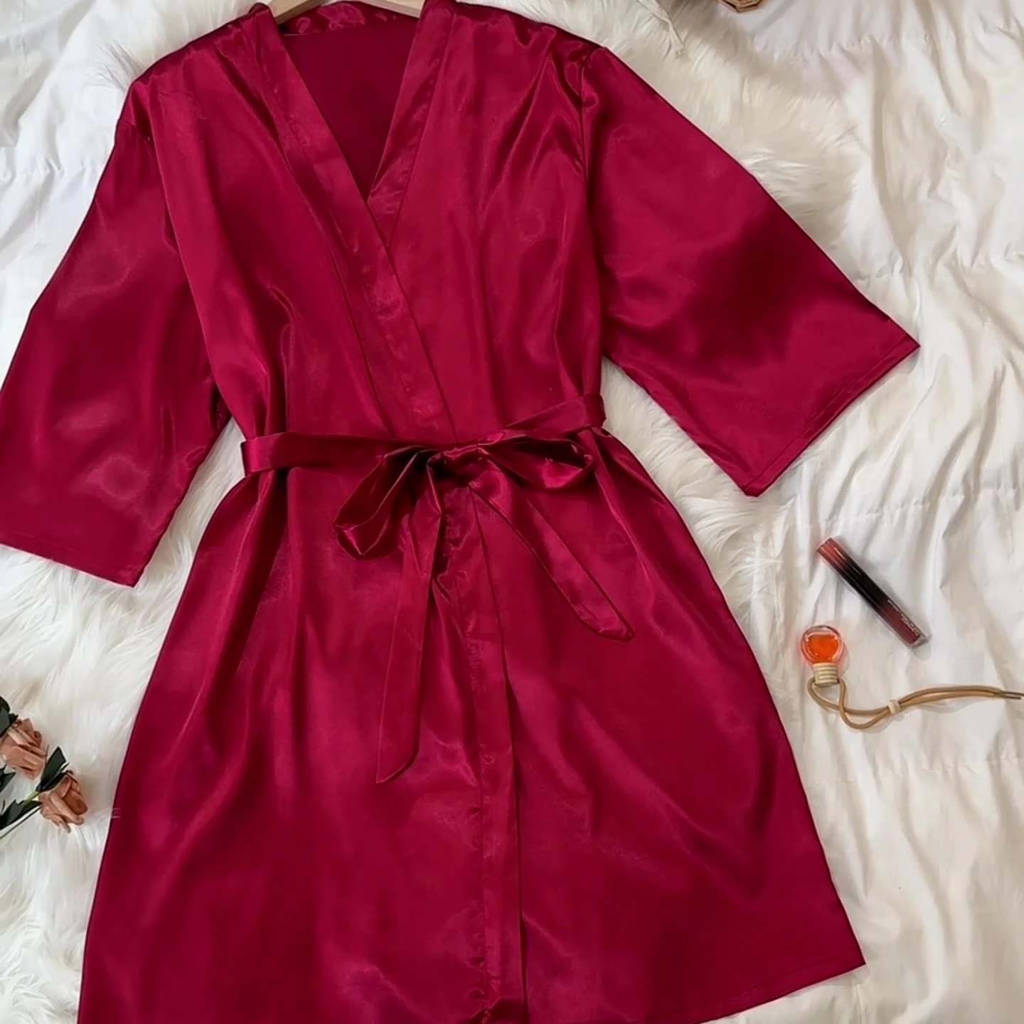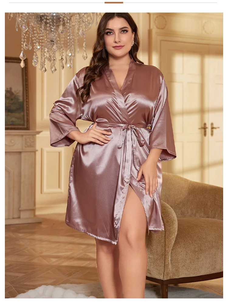 Women’s Satin Robe Summer Floral Kimono Cover Up with Belt Sexy Lightweight Loungewear Silky Smooth Open Front House Dress