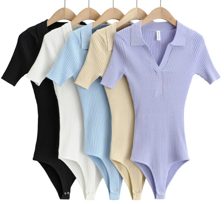 Womens summer clothing bodysuit women sexy bodycon bodysuits black short sleeve one piece outfit fashion bodysuits polo shirt