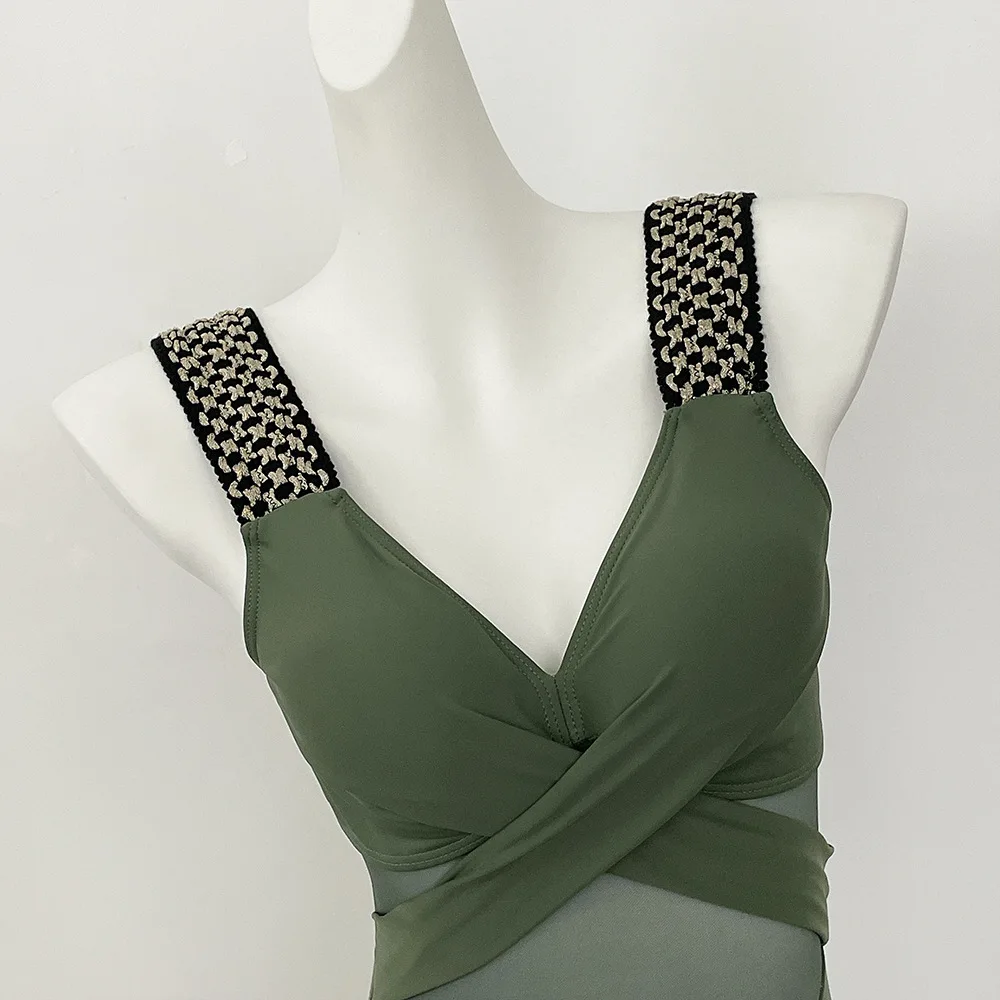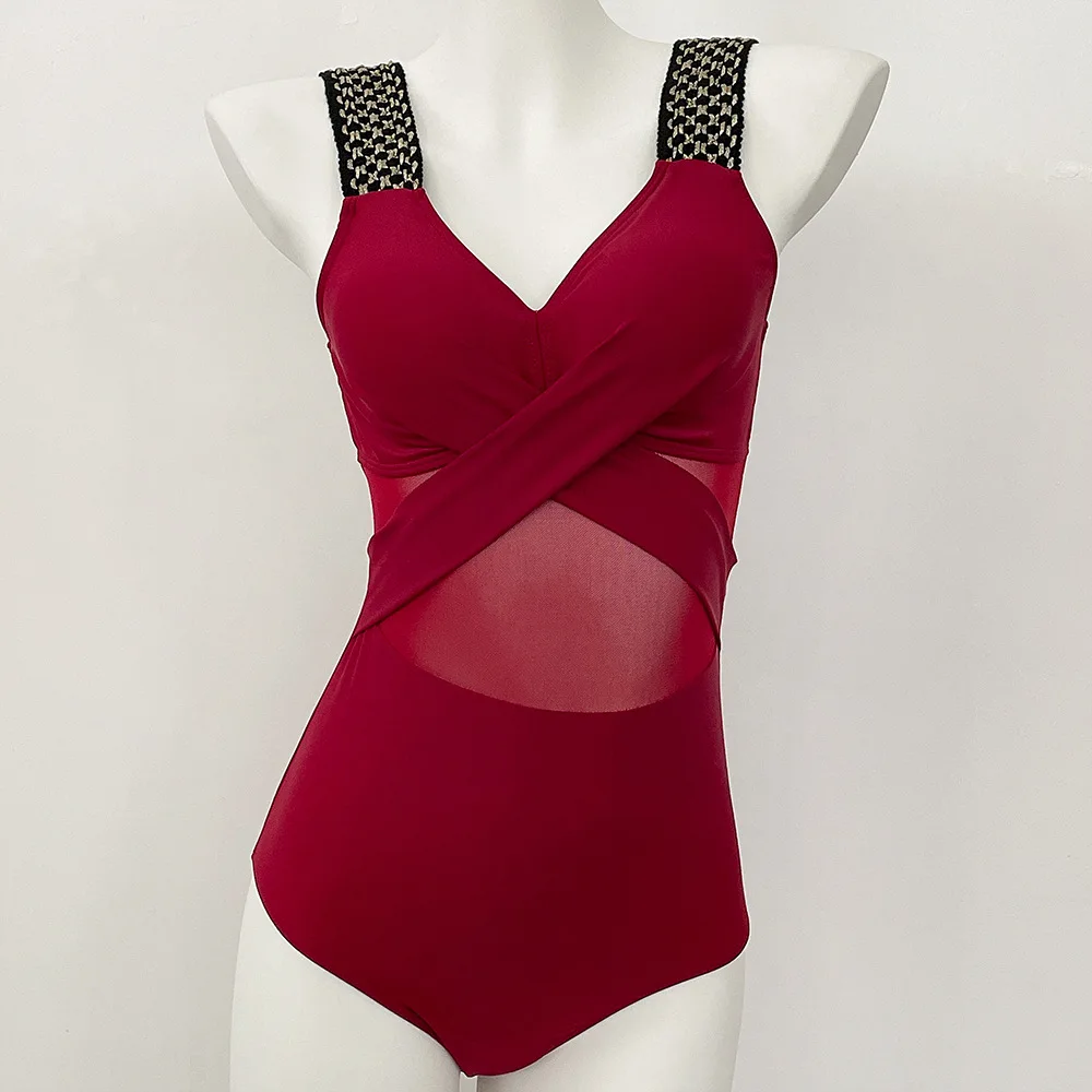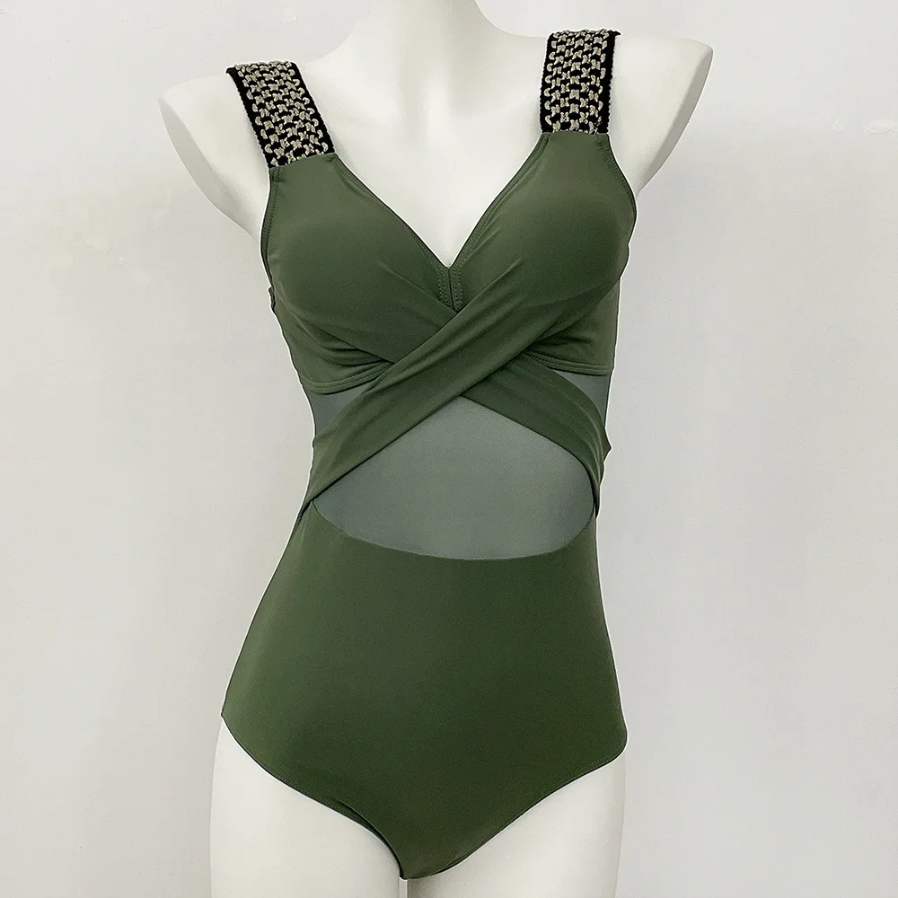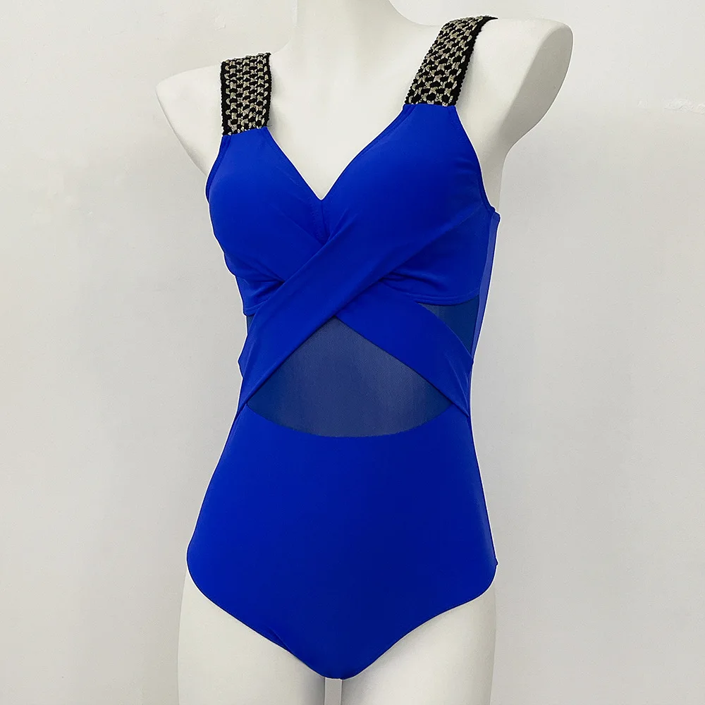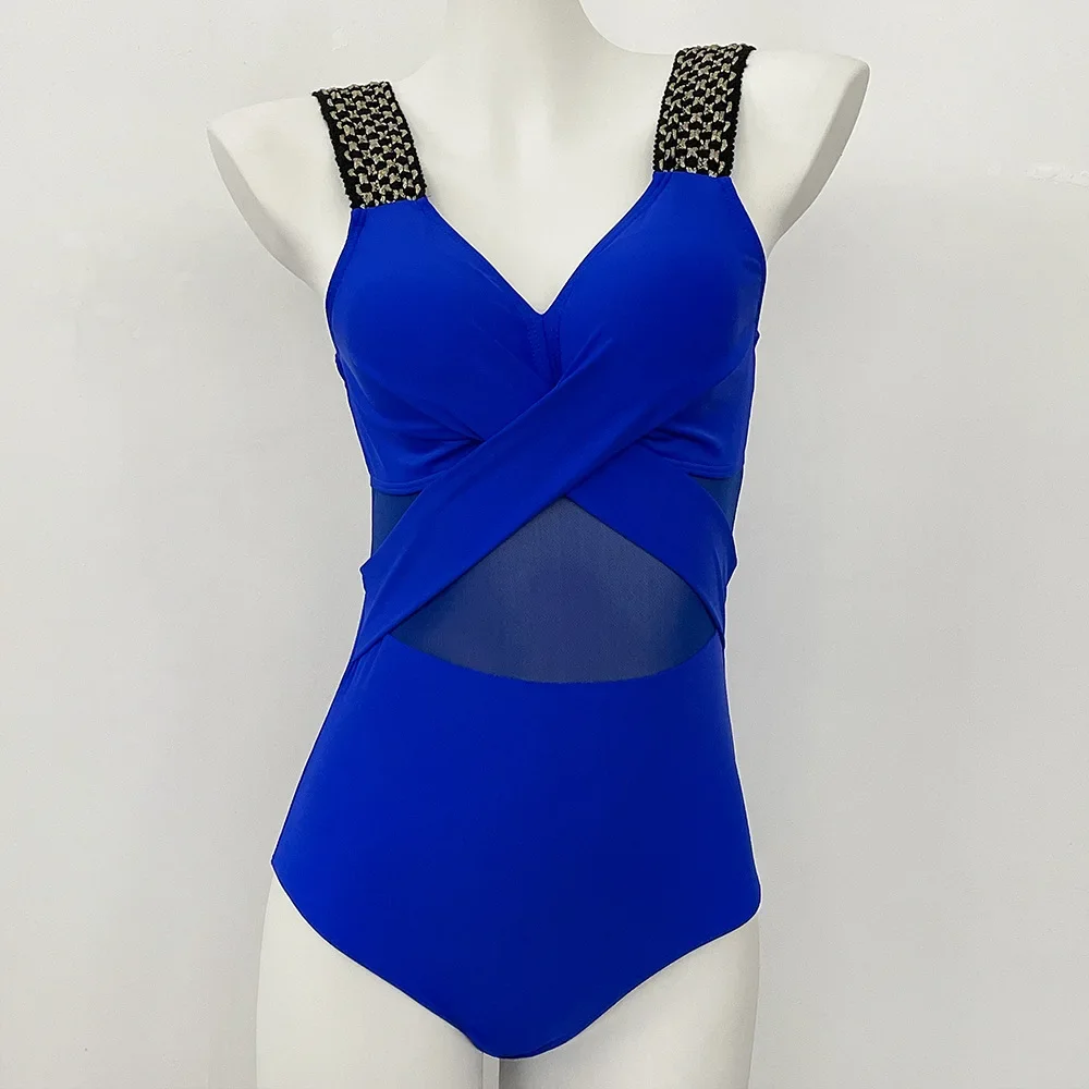 Women’s Swimwear 2025 One Piece Swimsuit Metal Modest Tummy Control Bathing Suit Slimming Coverage Mesh Swim Suits 2025 Swimwear